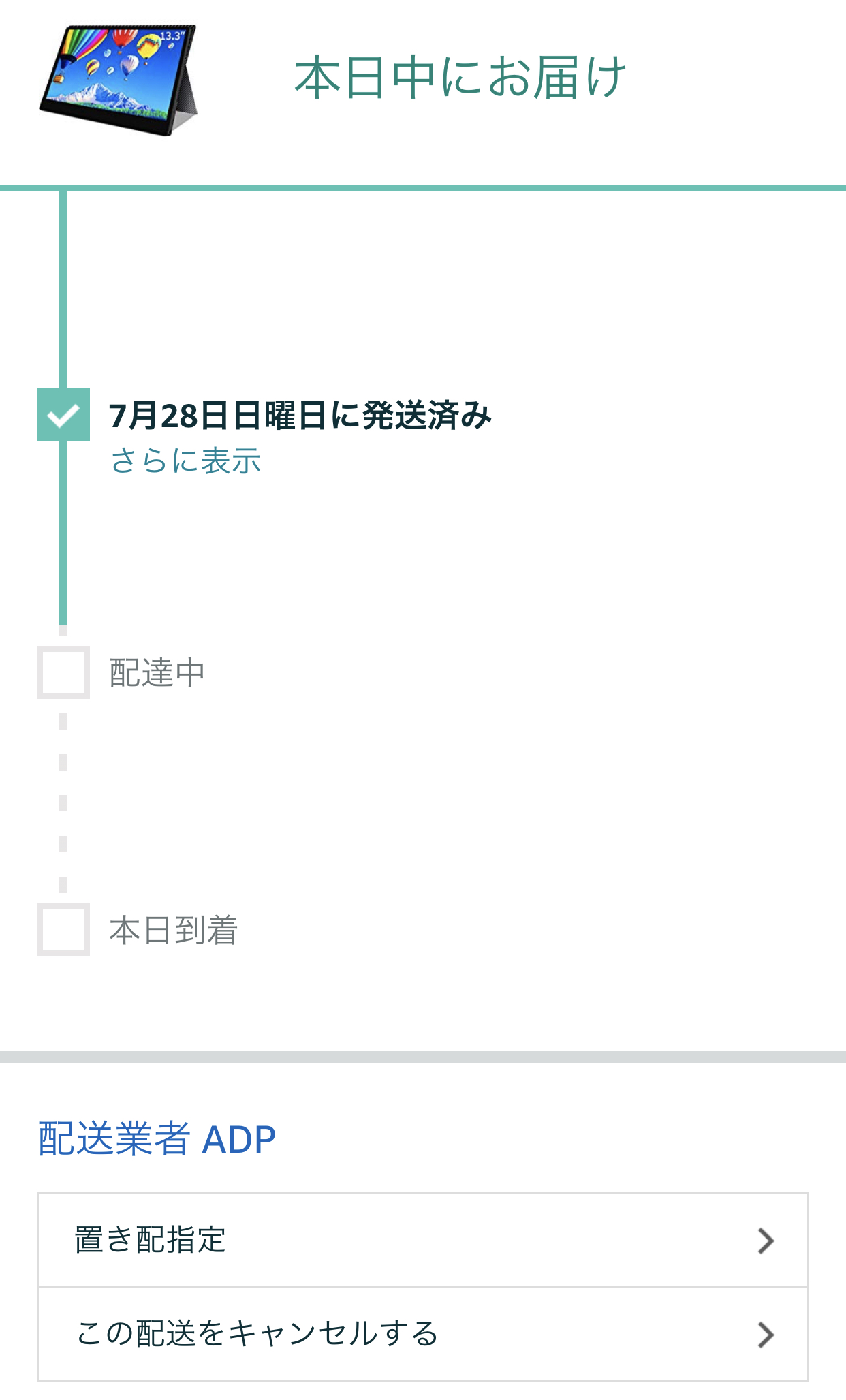 配達業者はADP(デリバリープロバイダ)で、配送状況チェック中に気になる項目を発見。