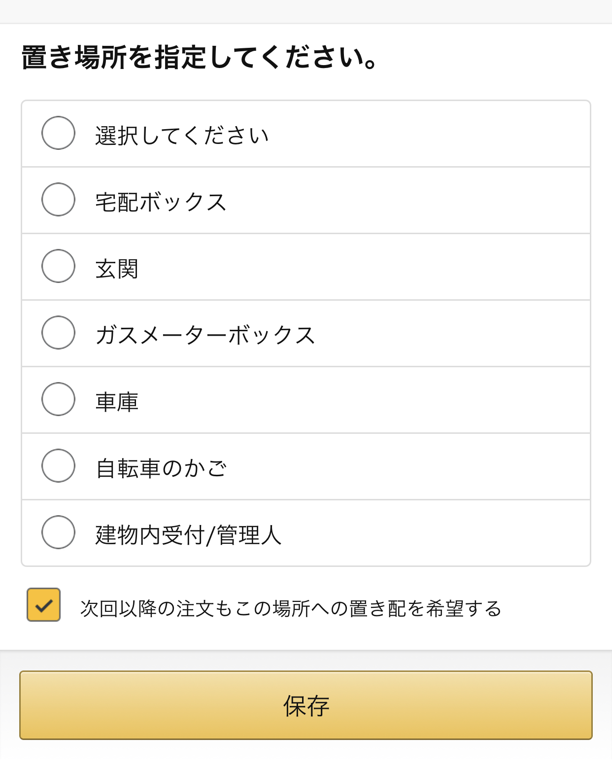 宅配ボックス、玄関等の置き場所指定ができる項目が表示されました。