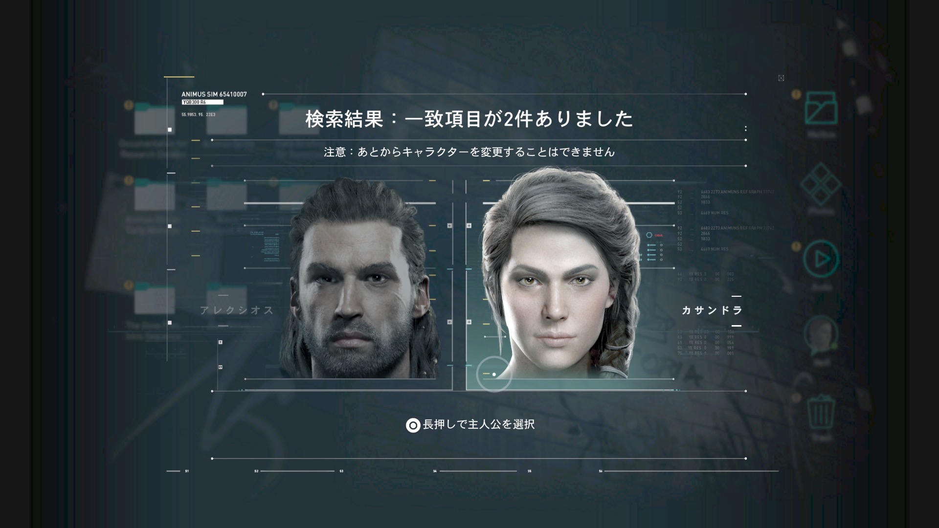 男性主人公「アレクシオス 」、女性主人公「カサンドラ」のいずれかから選択することができるのですが、ストーリー展開には影響せず、本当に好みの問題になります。