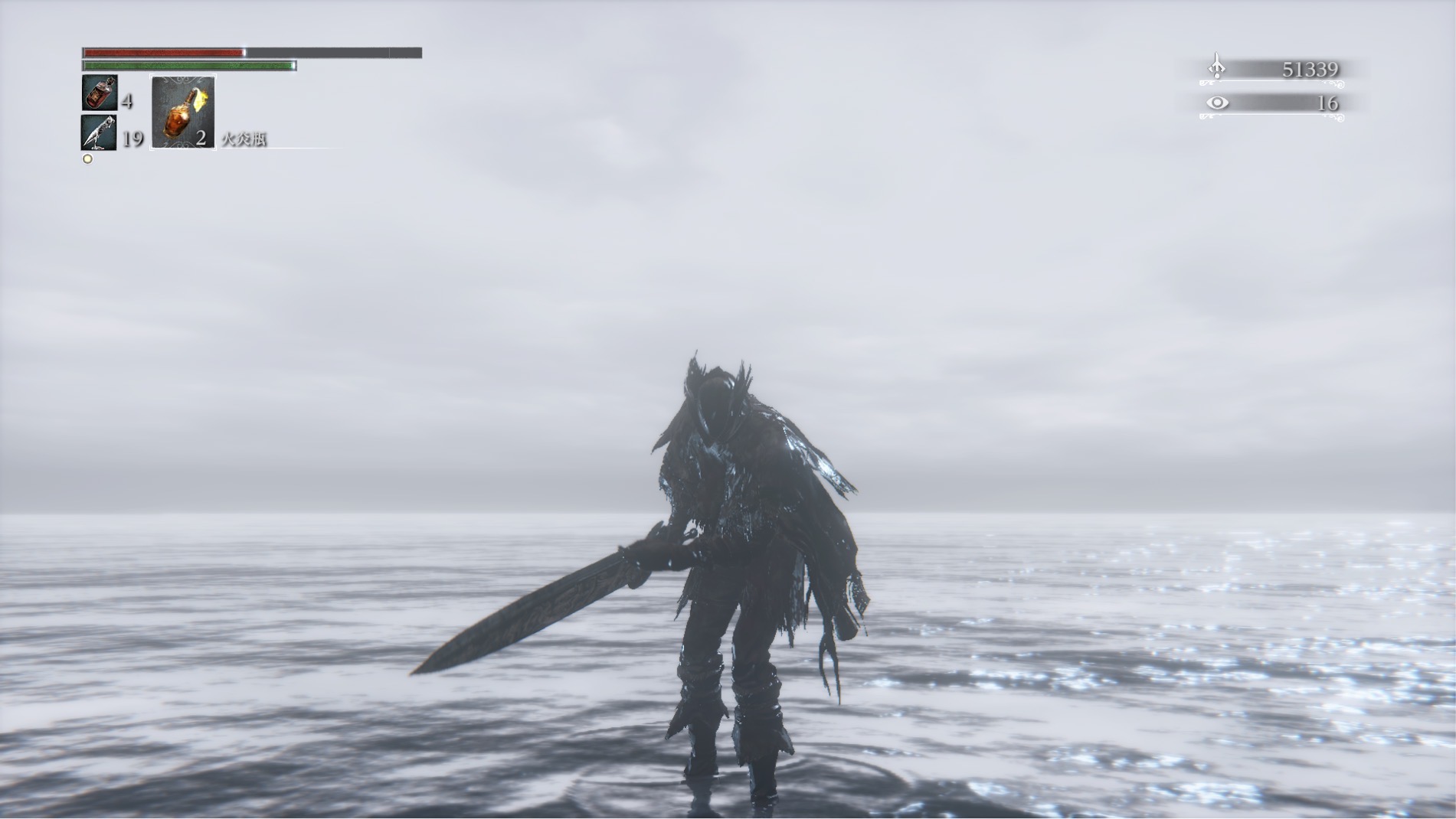 無駄に長いムービーも無く、無駄に長い解説や丁寧過ぎるチュートリアルも無く、突然放り込まれた陰鬱な世界でただ1人獣を狩って回るうちに、悪夢の根元にたどり着く。