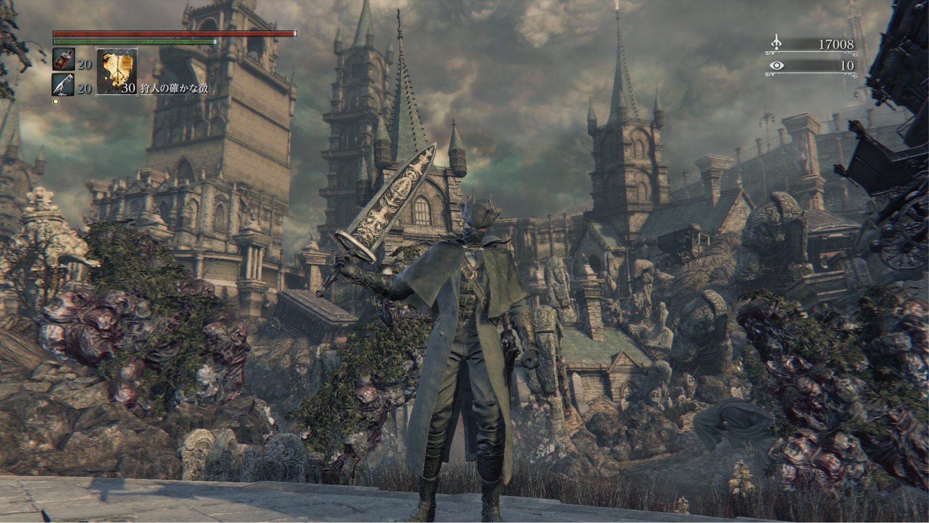 ホラーテイストのゲームは苦手なので、バイオハザードシリーズを始めとした恐怖を感じると思われるジャンルには手を出さないようにしていたのですが、ダークソウル1リマスター、ダークソウル3、隻狼とフロムソフトウェア製のアクションRPGをプレイしていくにつれて、とうとうプレイしたBloodborne。