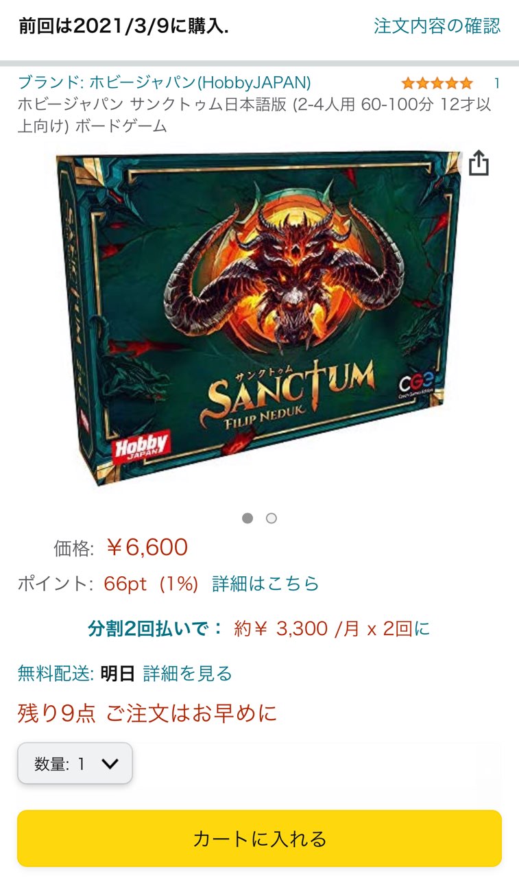 何気なくAmazonの在庫を眺めていたら、みるみる残り点数が減っていってしまったので、セールが終了する前に購入確定しておきました。5,300円の時に購入済み。