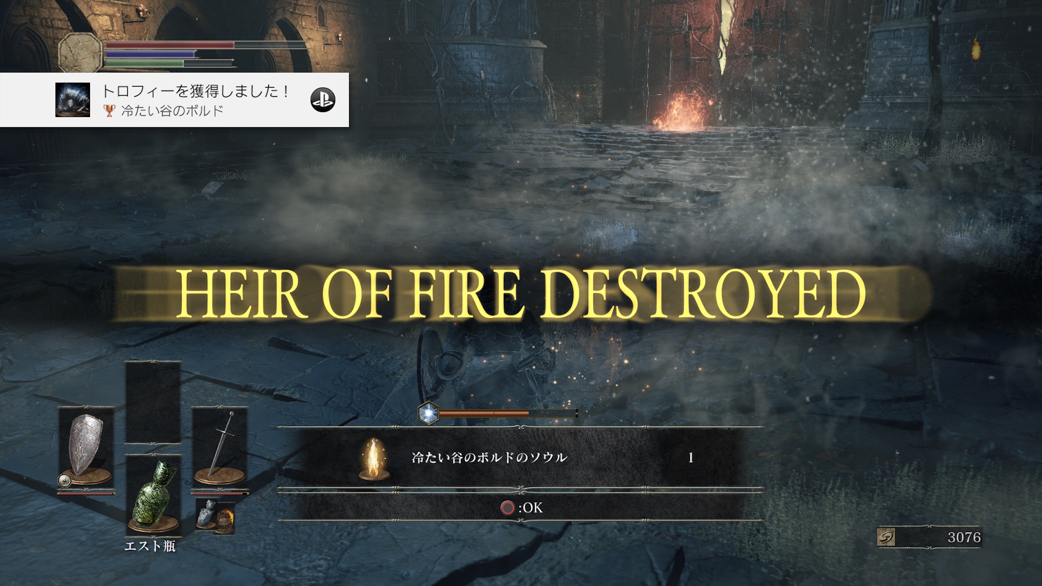 物語的なつながりを示唆するのは「ダークソウル (無印)」と「ダークソウル3」の2作品であって、ダークソウル2は外伝としての立ち位置と考えると、プレイする場合はダークソウルリマスタード→ダークソウル3の順がオススメです。
