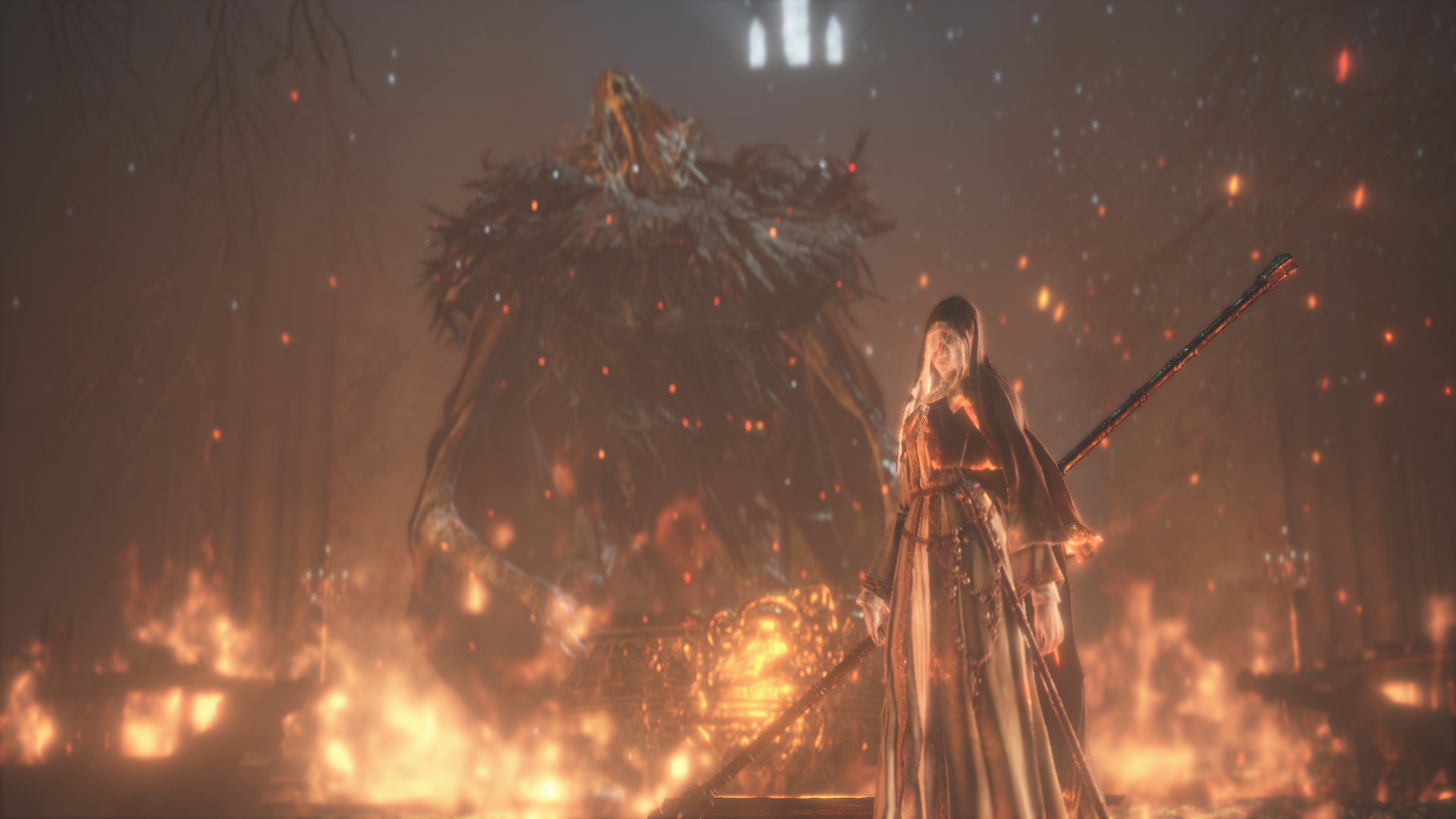 玉座を捨てた薪の王たちとの激戦の末、彼ら(の一部)を玉座へと戻し、はじまりの火の炉へと歩みを進める主人公「灰の人」。そこで待つ最初にして最後の者と出会い、剣で語る。