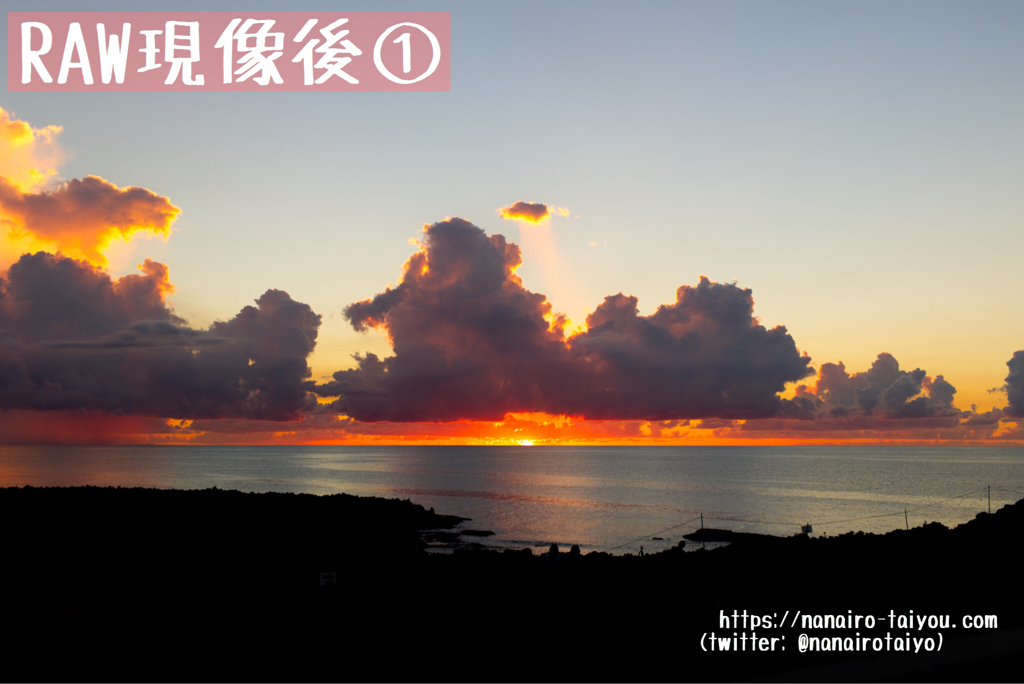 実際に撮影後に自動生成されたJPEG画像と現像処理を行ったRAW画像比較してみます。