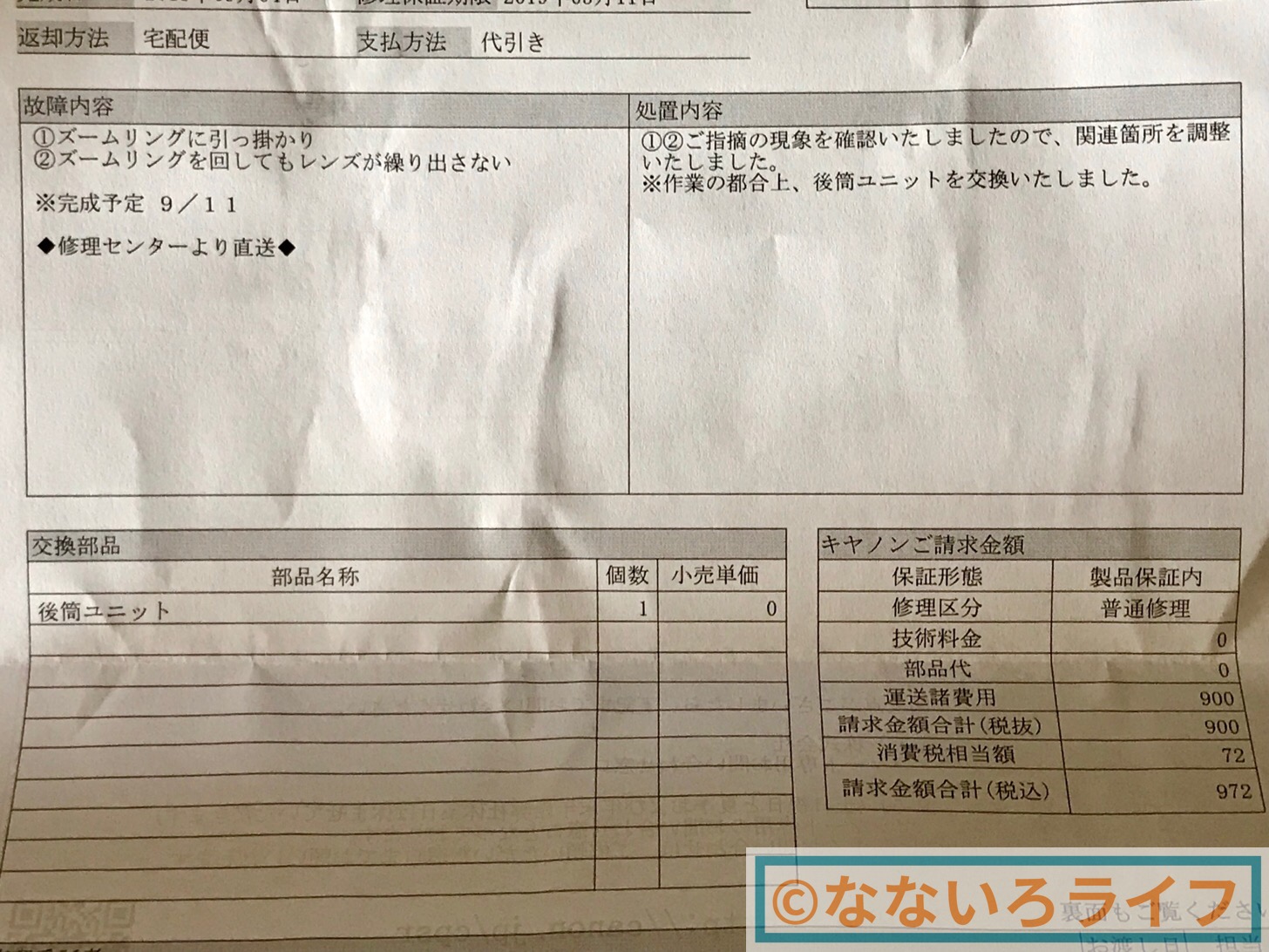 無事にヤマト運輸のお兄さんに送料代引き972円を支払い、返却されたレンズチェックと明細を確認。