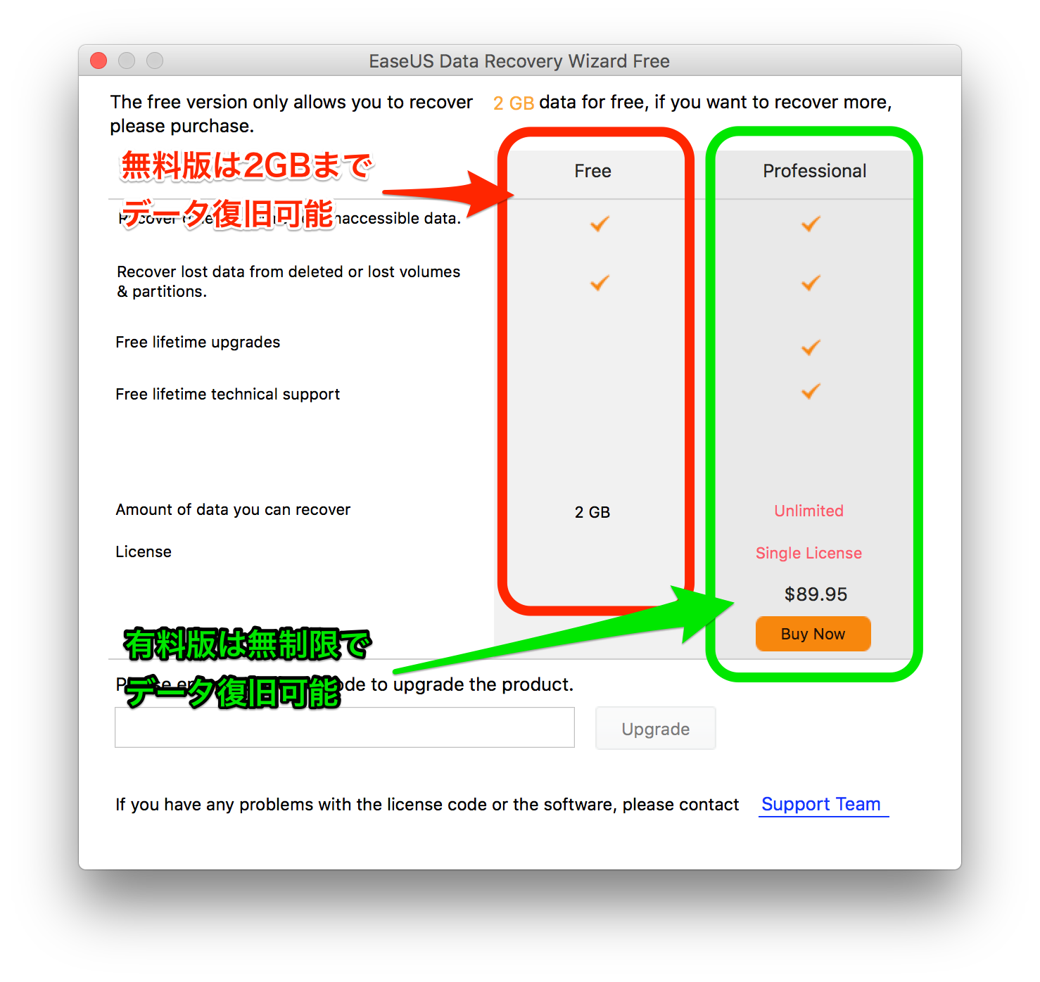 無料版はデータ復元が2GBまでですので、大量の写真データや動画データなどを削除してしまっている場合には、有料版「Professional」を使った方が良さそうです。