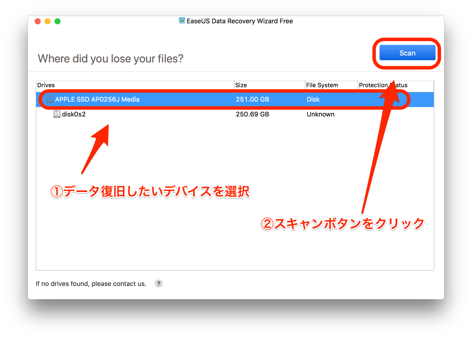 データ復元アプリを立ち上げてデバイスをスキャン