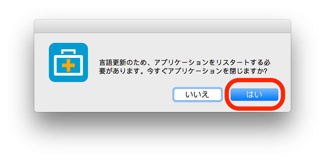 「はい」を選んでクリック後、アプリを再起動すると日本語表示に変更されます。