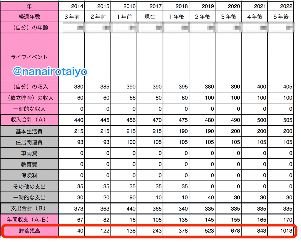 試しに、キャッシュフロー表で向こう5年間の収支計画を書き出してみました。