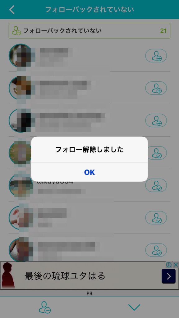上のアプリはApp Storeから削除されたようです。フォローチェックをしたい方は別のアプリもありますので、そちらも候補に入れてください!