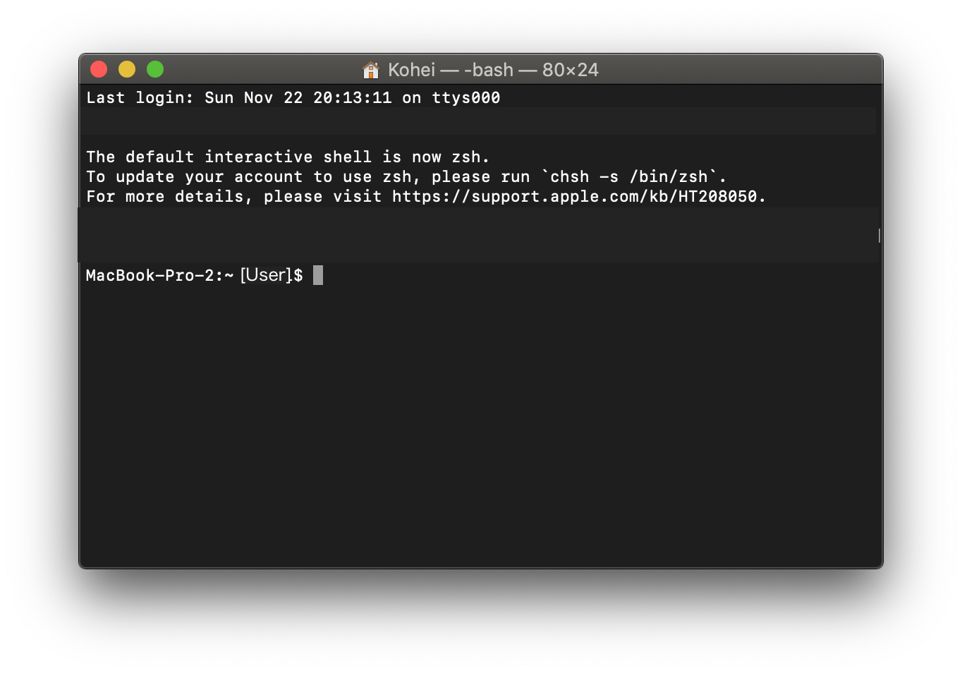 ※青字箇所1には、MacBookを利用中のユーザー名が反映されます(上のコードをそのまま使用しないように注意しましょう)。