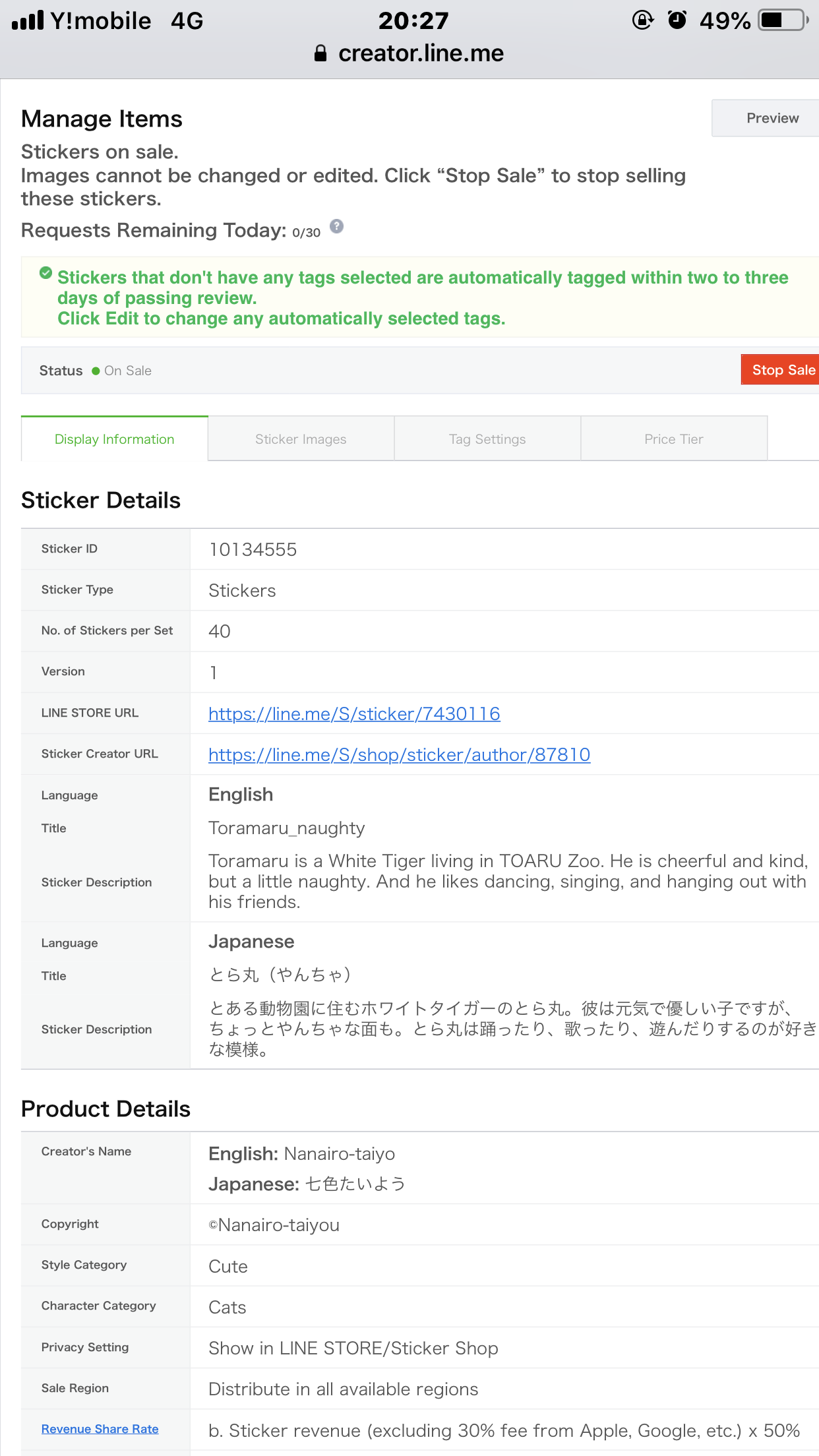 長い間、温め続けてきたとら丸スタンプがリリース開始になりました!