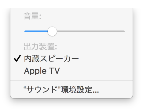 出力ページを開くと、サウンドを出力する装置がApple TVに接続がされていました。
