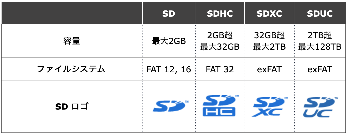 こうしてみると同じようなメモリーカードでも、取り扱い可能な容量の上限がどれくらい異なるかが一目瞭然ですね。