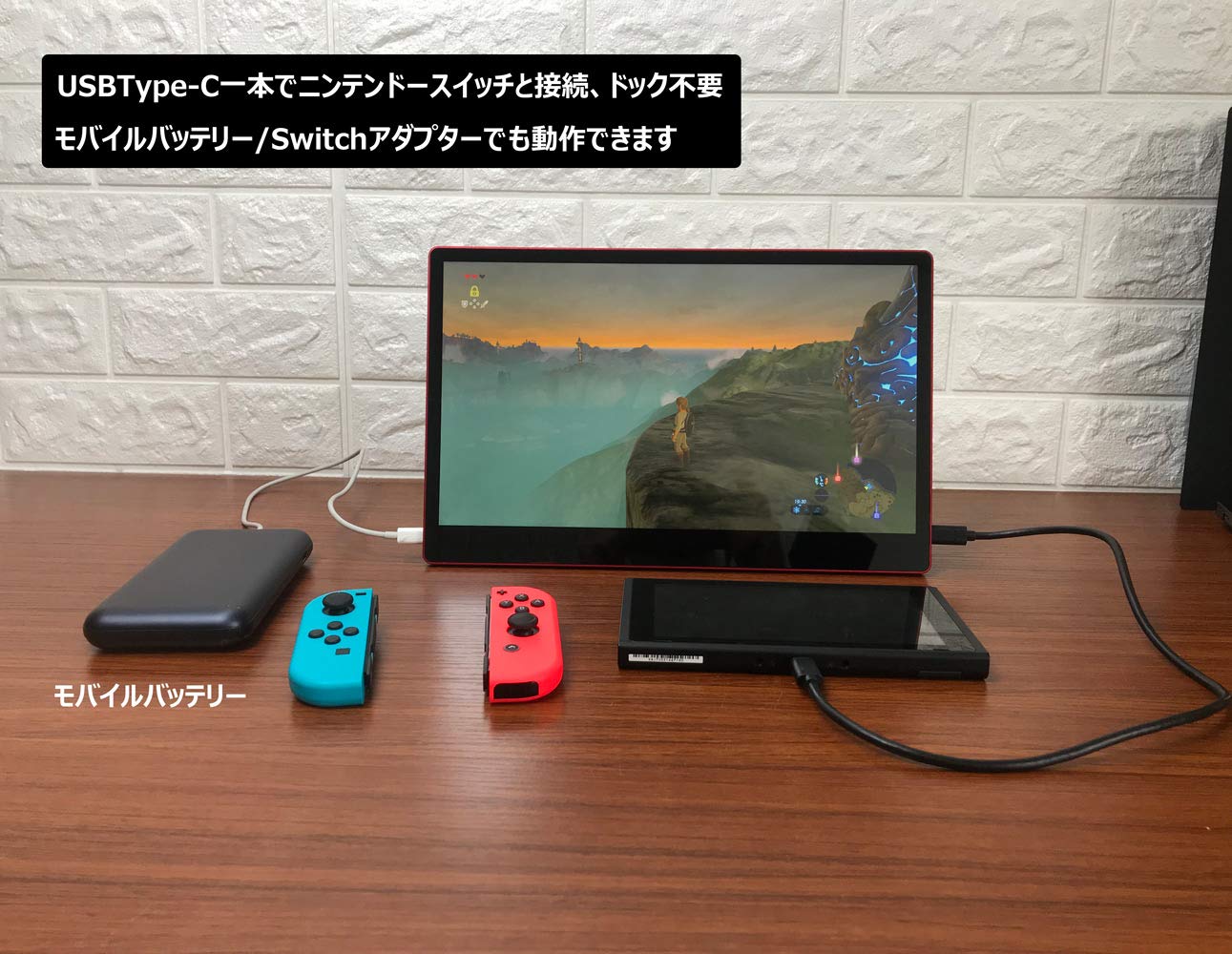 PD給電-(USB-C)-モニタ本体-(USB-C)-ニンテンドースイッチ