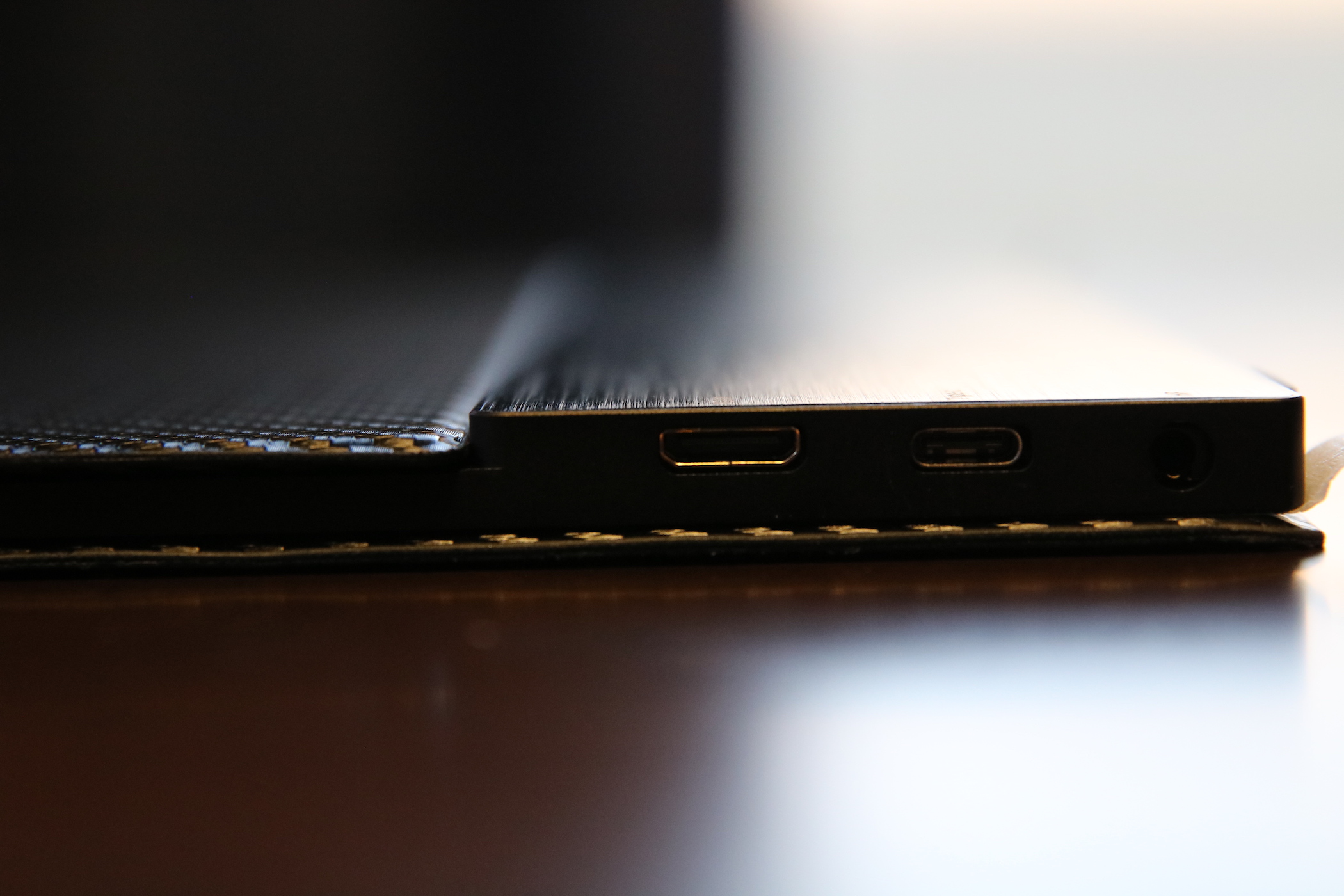 HDMI mini、USB-C、HP(Head Phone)のポート側。