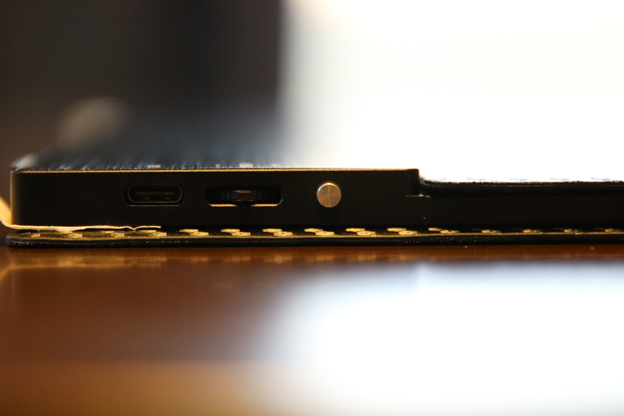 電源ボタン、MENUボタン(音量含む)、PD電源差込口のポート側。