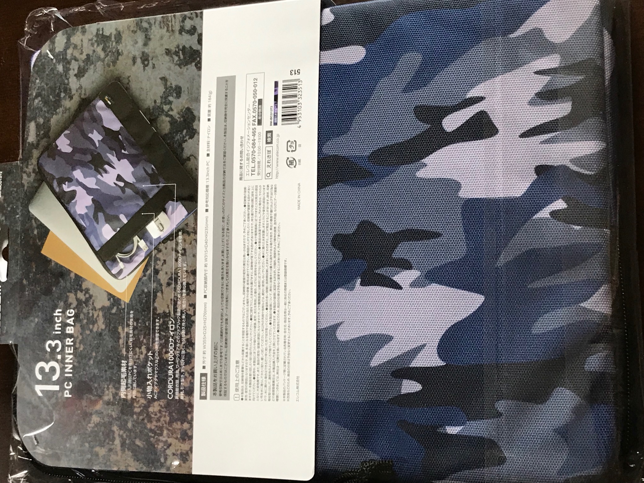 購入したケースは「エレコム製 CORDURA 迷彩 PCインナーバッグ 13.3インチ」です。