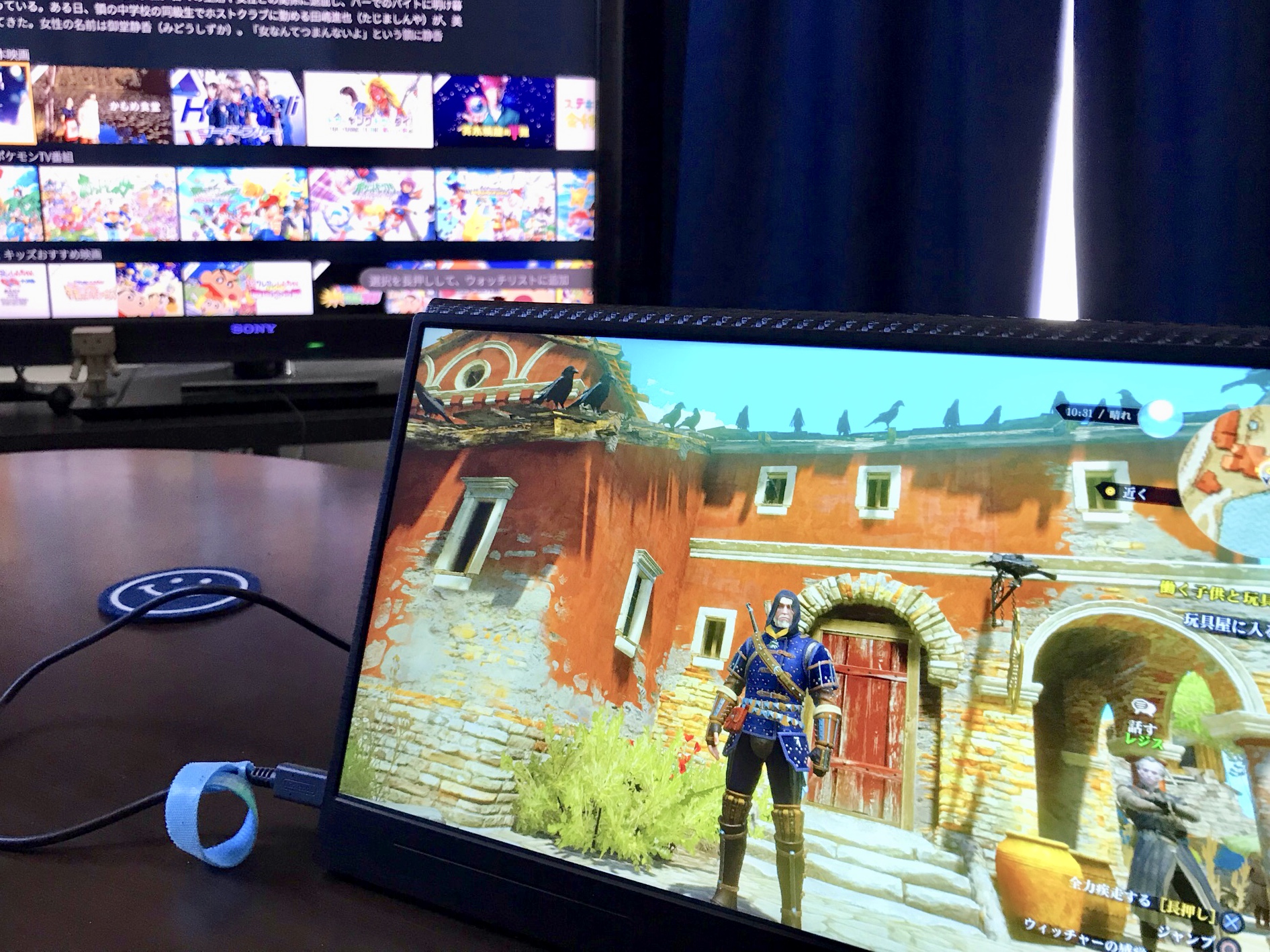 ただ、Amazonプライム・ビデオも観ながらのんびりとプレイするために、今お気に入りのモバイルモニタを使って遊んでいます。