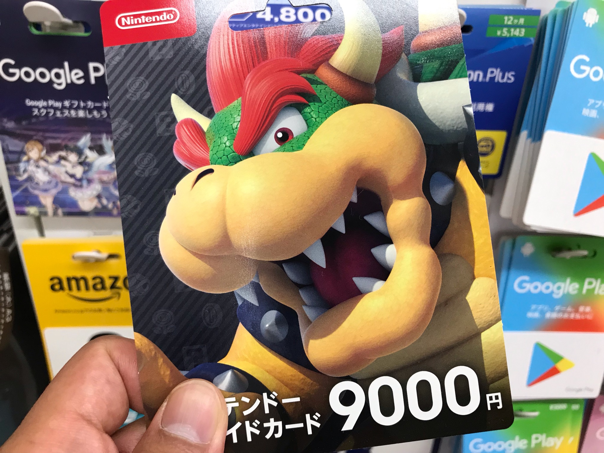 ニンテンドープリペイドカードクッパ(9000円)購入で、ニンテンドーeショップ1000円分の番号付与