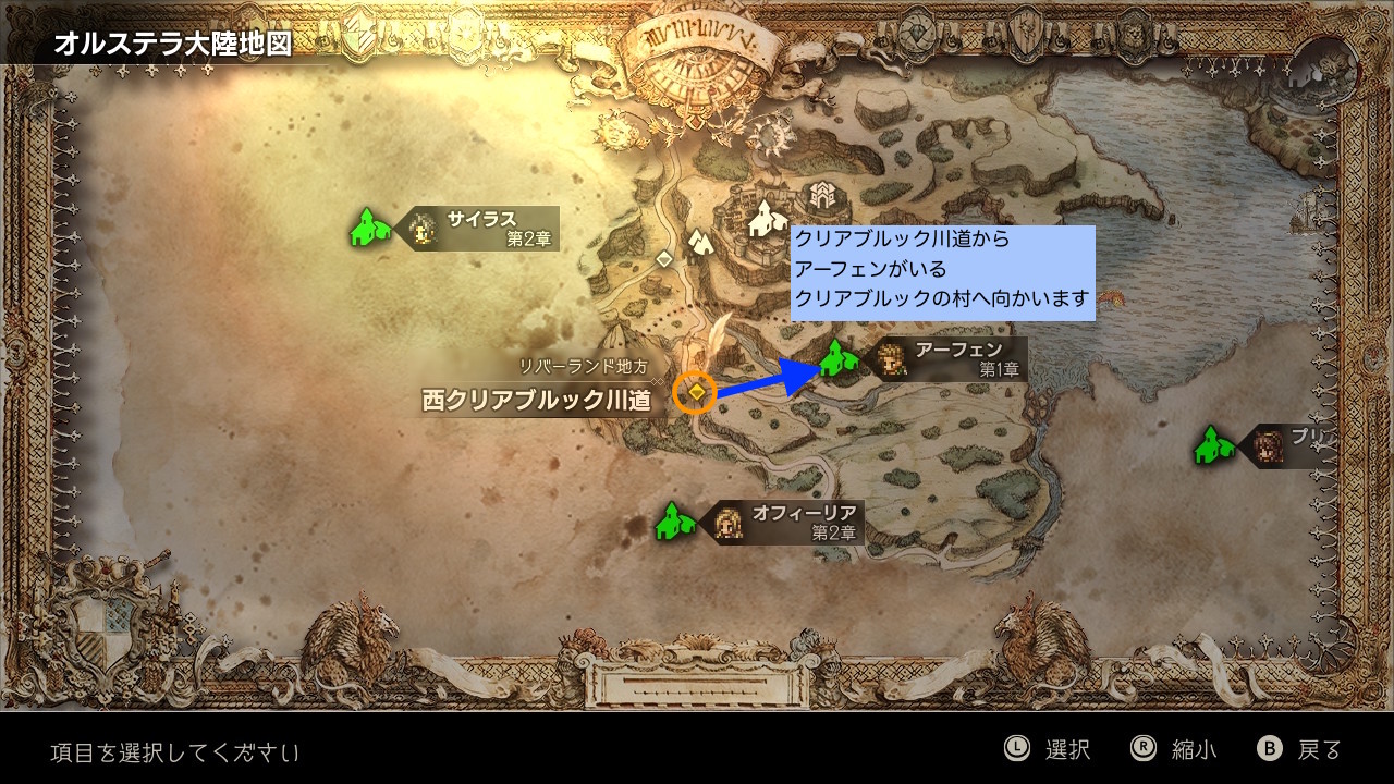 ハンイットを仲間にしたサイラス先生一行はリバーランド地方の西クリアヴルック川道を歩き、アーフェンのいるクリアブルックへ向かいます。