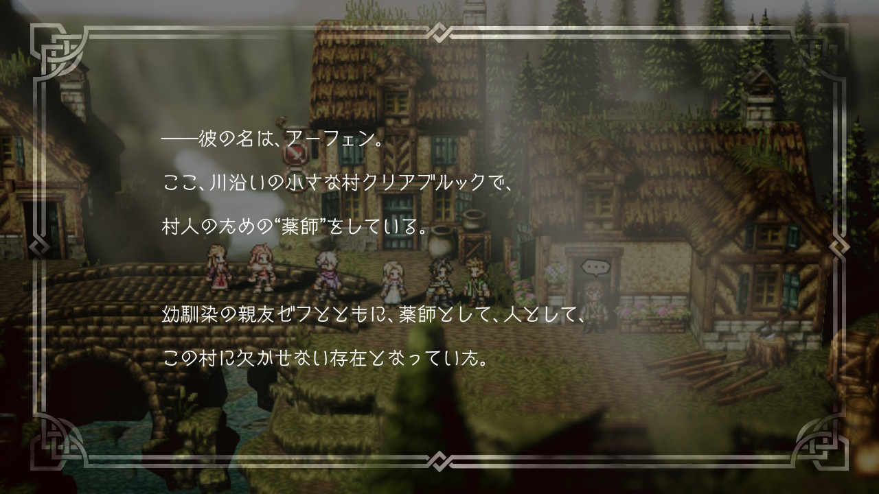 クリアブルックの村で幼馴染の親友ゼフとともに薬師として、村人のために頑張る男、アーフェン。
