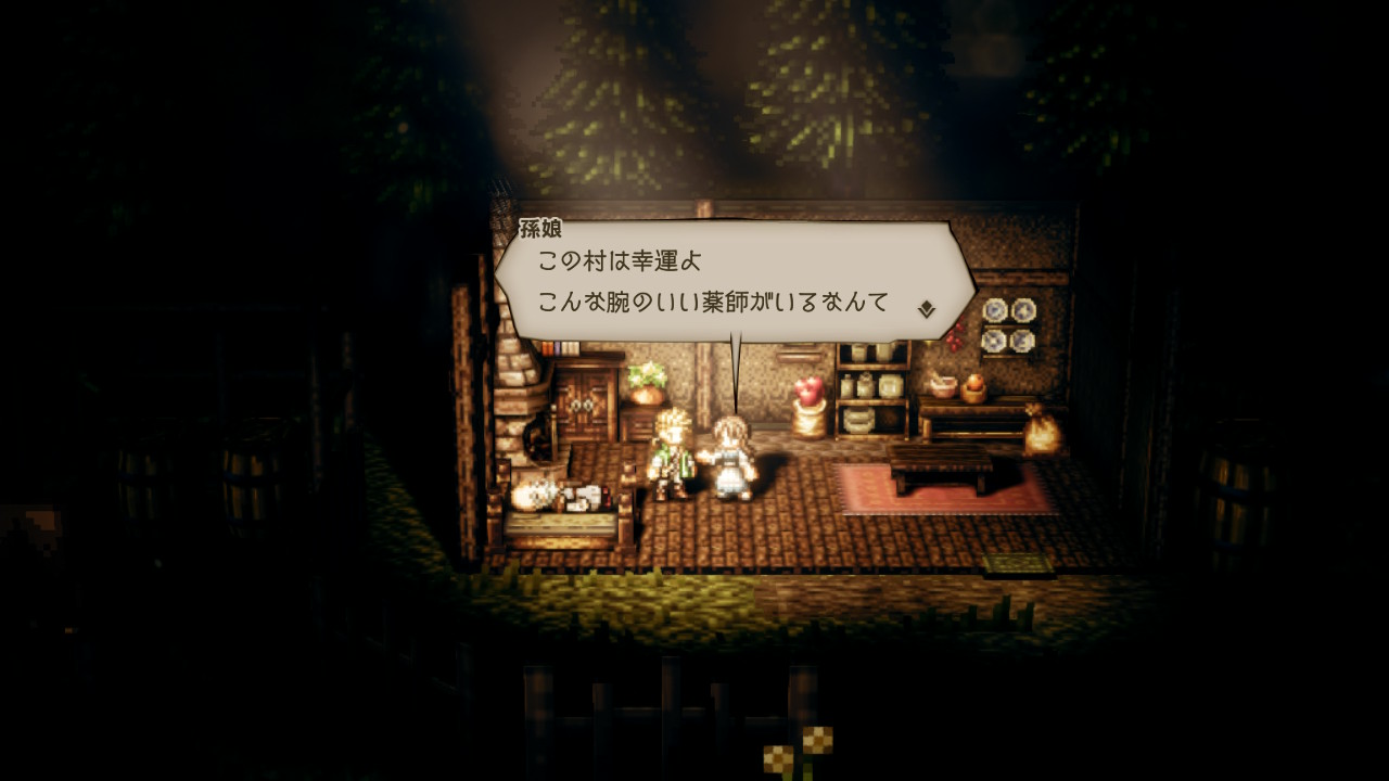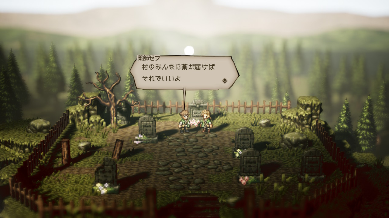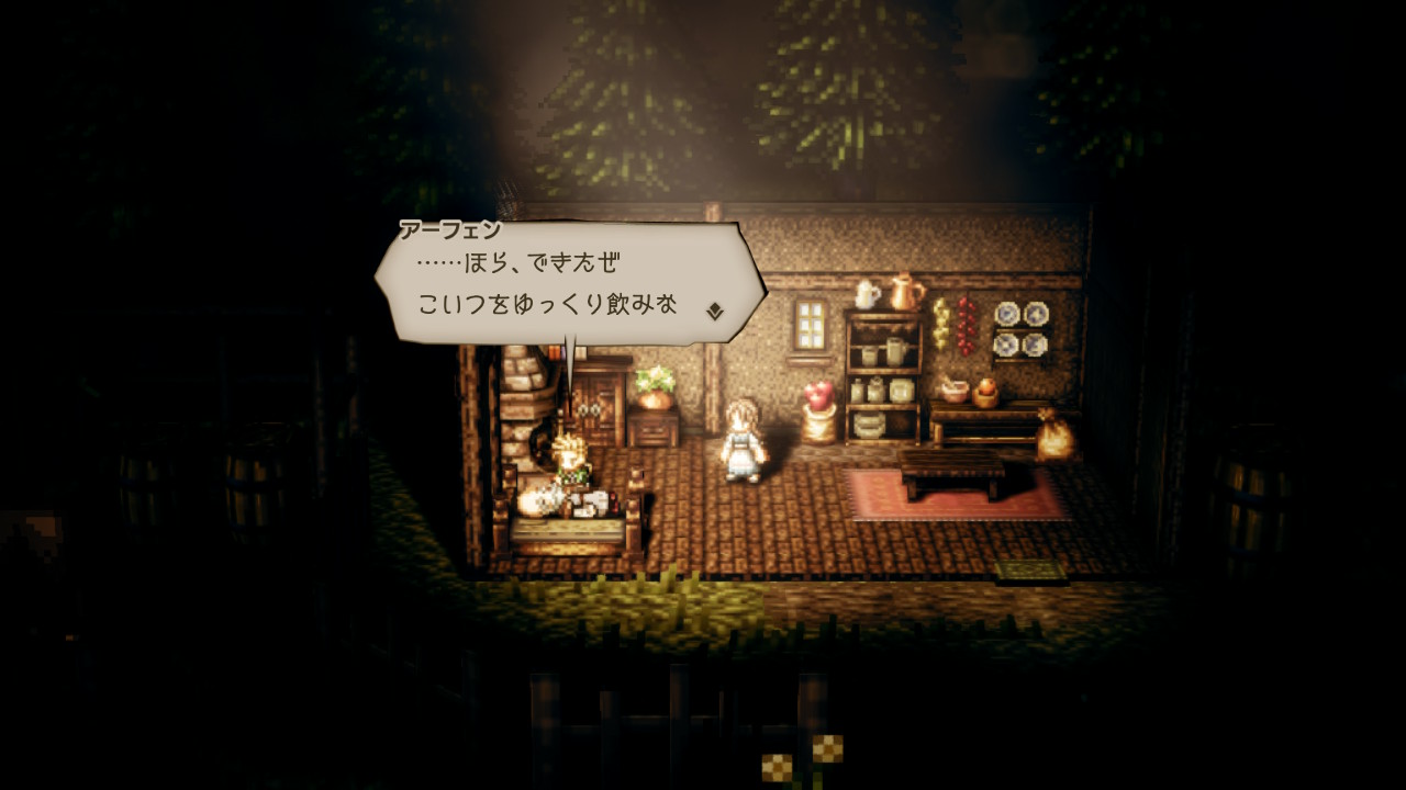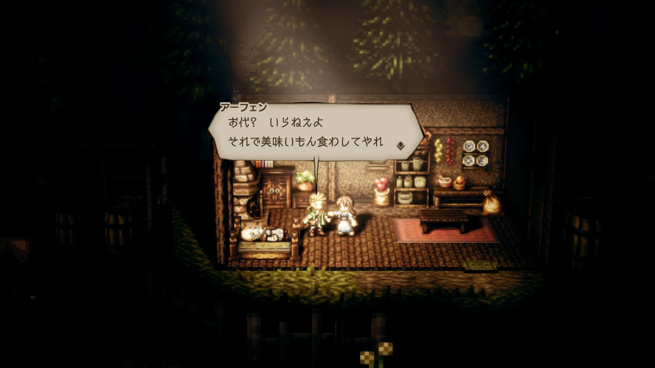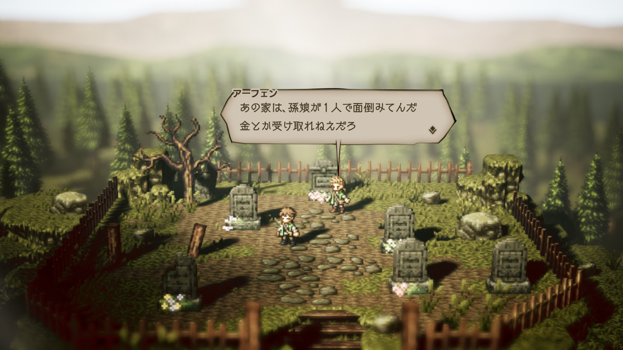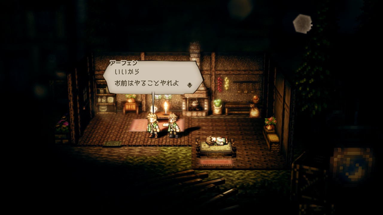 唯一の家族であるニナの身を考えると、心配で仕方ないゼフと親友のアーフェン。ニナが何に噛まれたか調査するため、アーフェンのフィールドコマンド「聞き出す」が解禁されました。