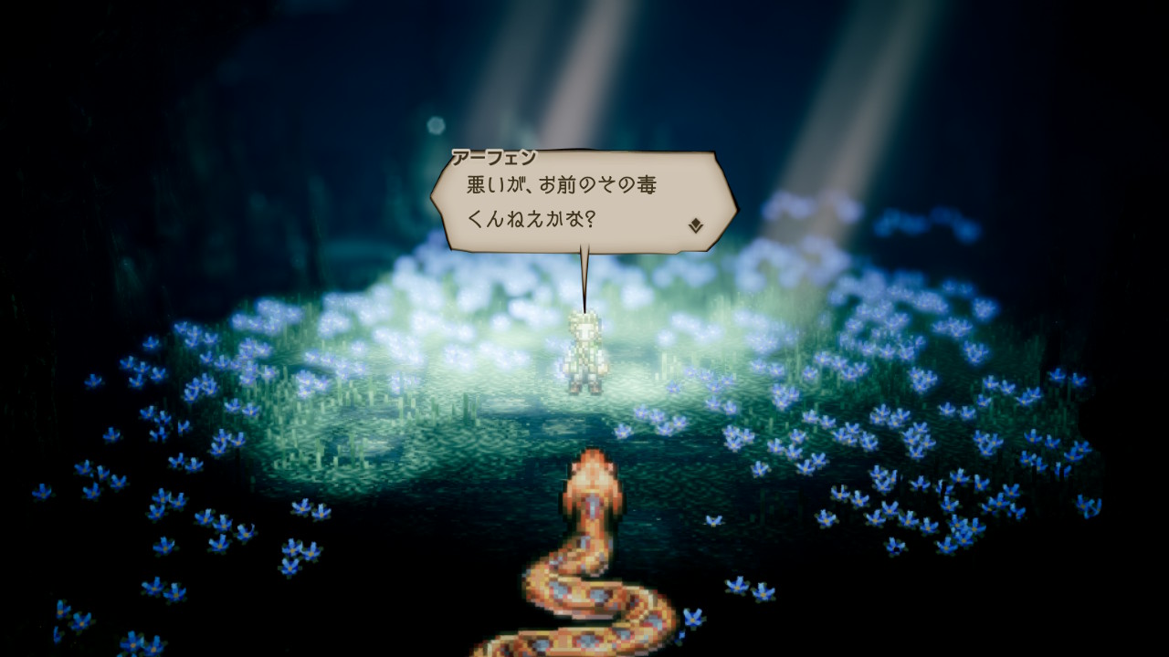 ゼフの妹が毒ヘビに咬まれてしまったため、解毒薬(血清)を作るために「リーオの洞窟」へ向かうようです。