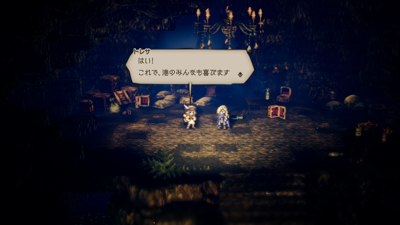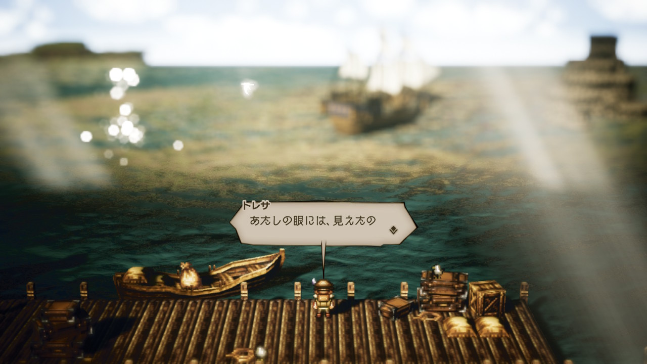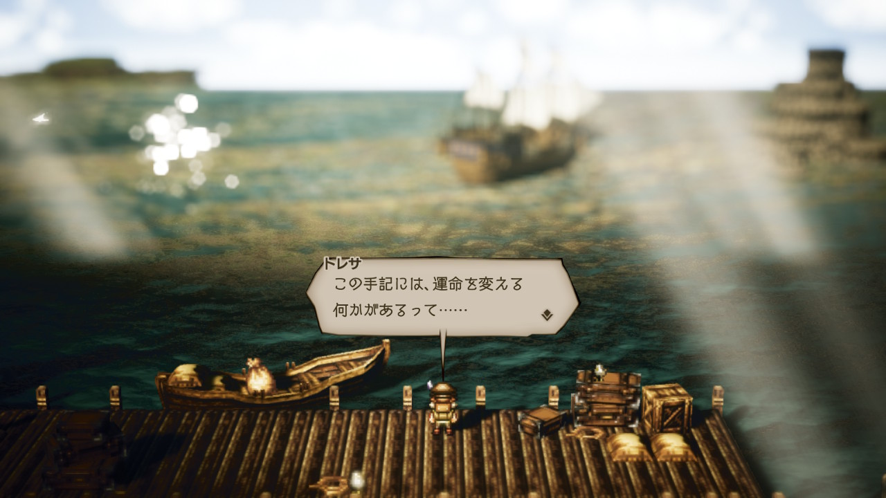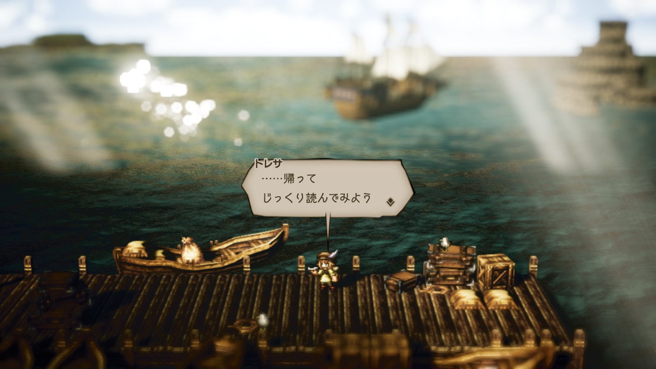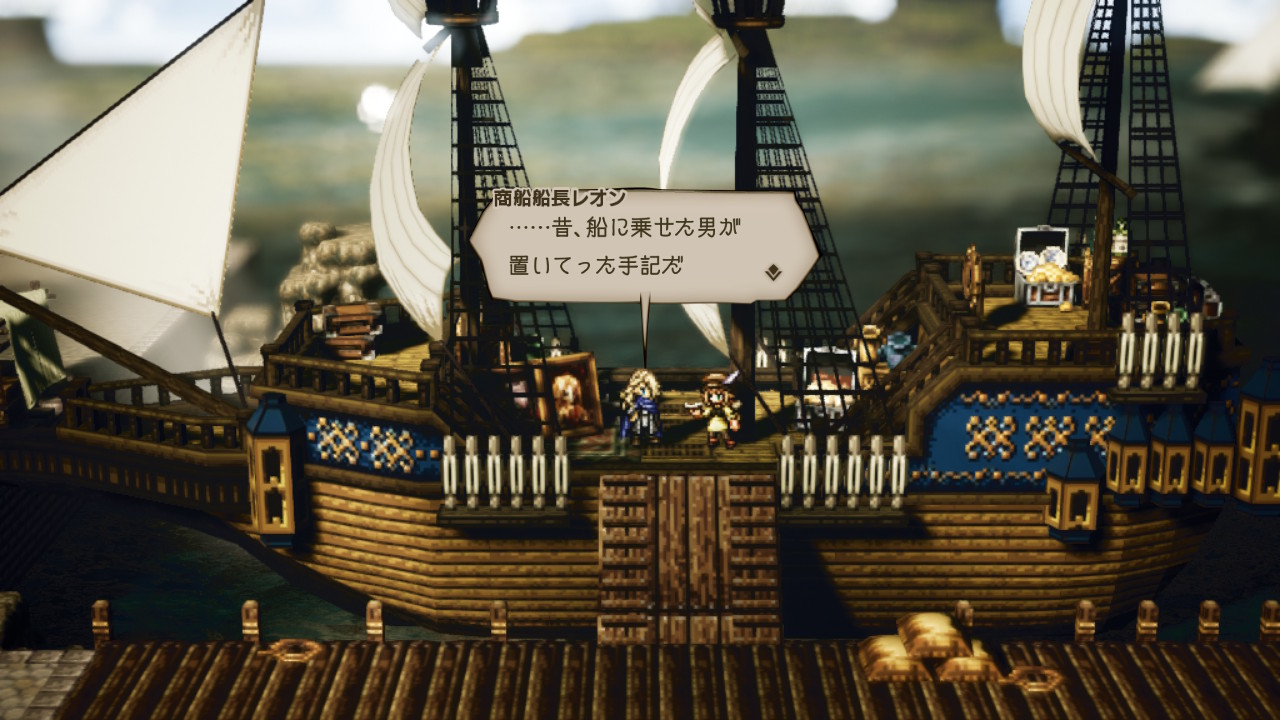 トレサの勇気を称えて、船の積荷を1つプレゼントしようと提案してくれたレオン船長に対し、悩んだ結果、船の上に置き去りになっていた1冊の手記を見つけ、「これをください」とお願いするトレサ。