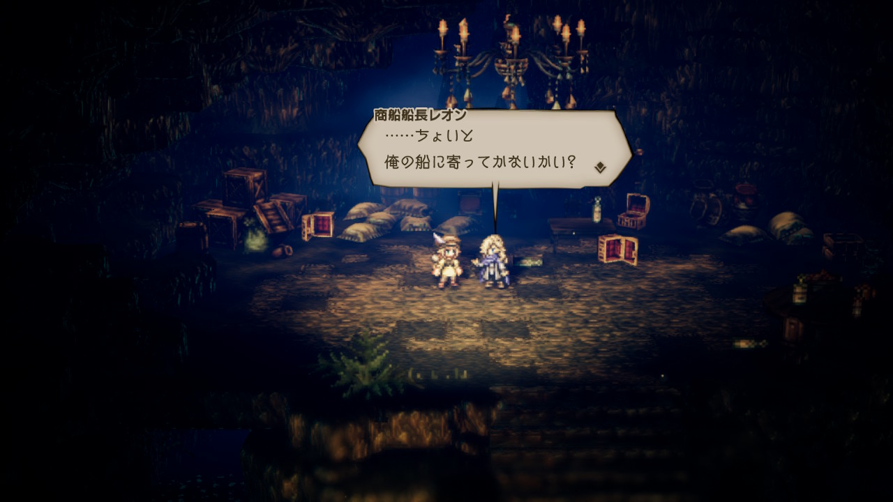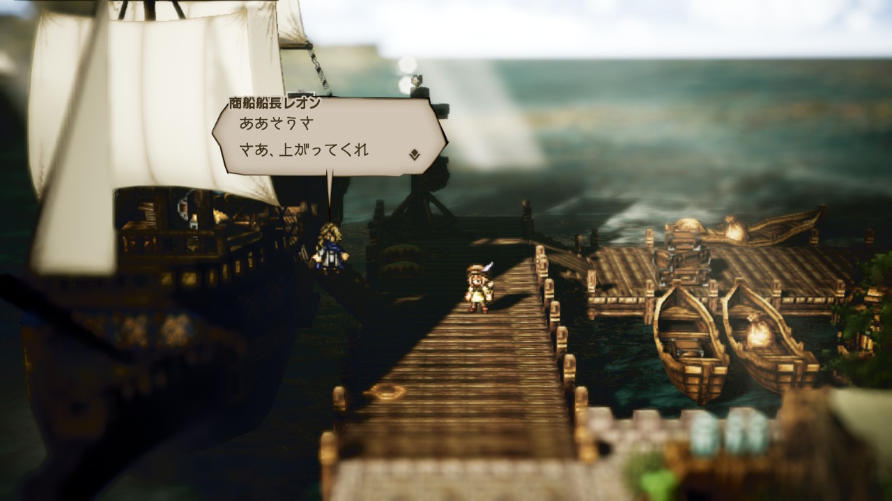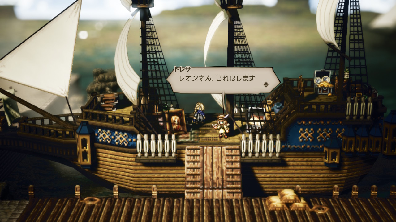 街の人々のために1人立ち向かうトレサの姿を見て、「ちょいと俺の船によっていかないかい?」と誘うレオン。