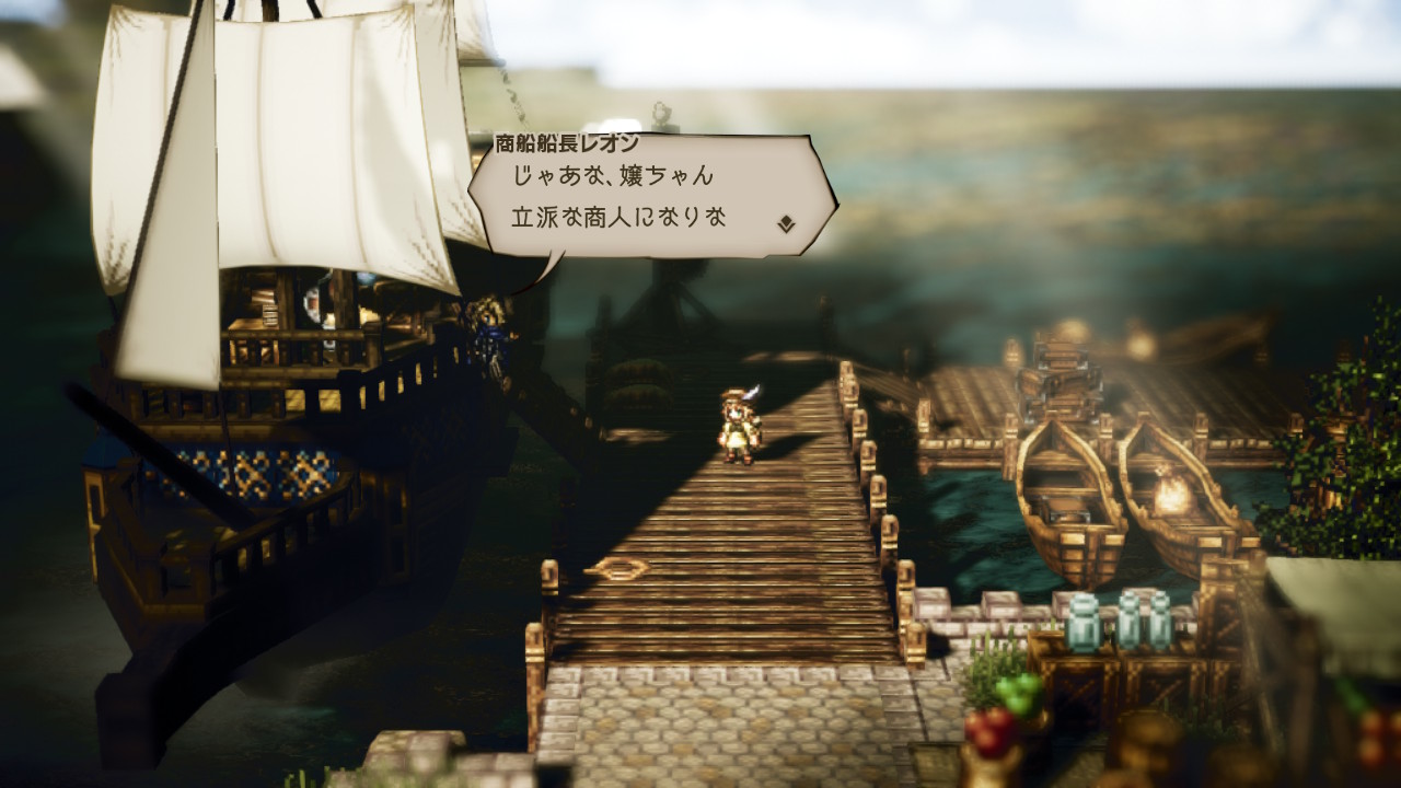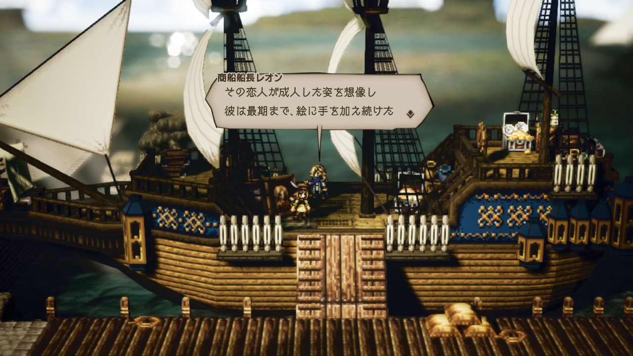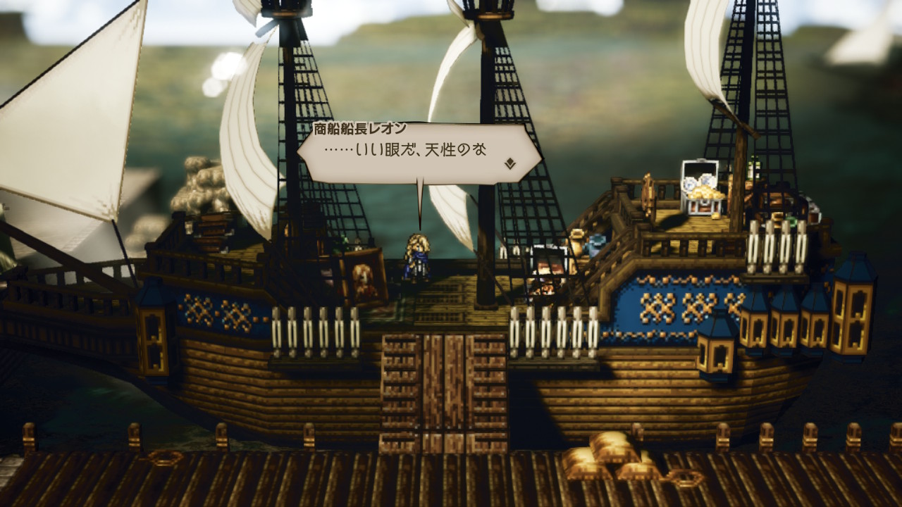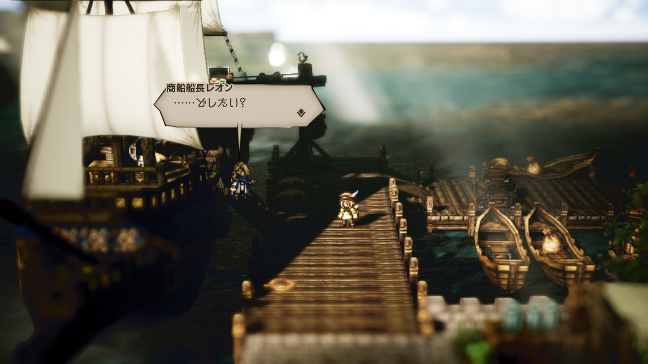 街の人々のために1人立ち向かうトレサの姿を見て、「ちょいと俺の船によっていかないかい?」と誘うレオン。