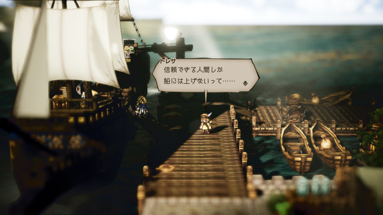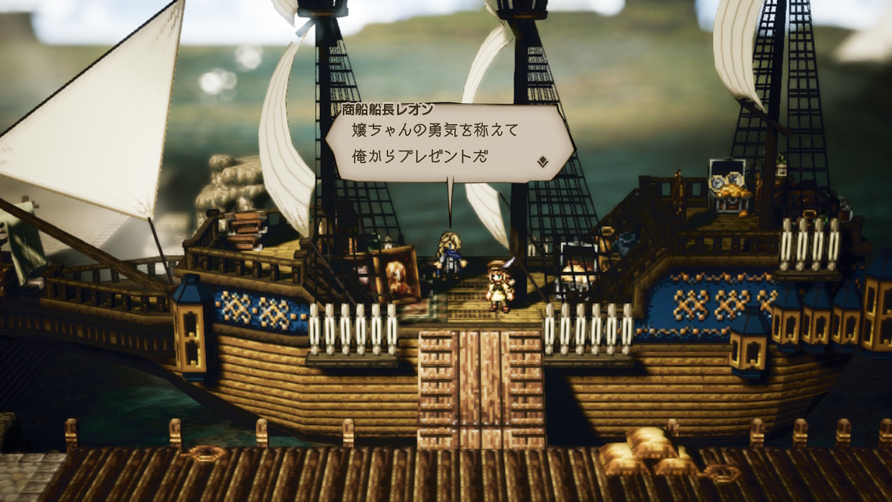 事前に「信頼できるやつしか船に乗せない」と聞いていたトレサは少し遠慮しますが、「あああそうさ、さぁ、上がってくれ」と返す船長のかっこよさたるや。
