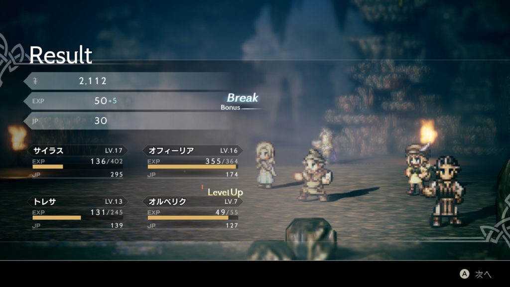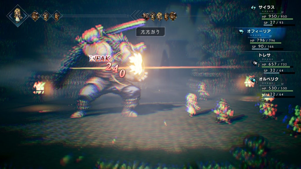 ちなみに、トレサが旅に出るのをとっても心配していたお父さんをオフィーリアの導くで無理やり連れてきていましたので、盗賊の親分のトドメを刺していただきました。