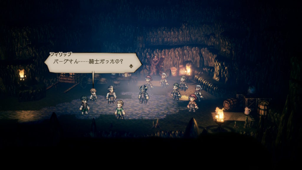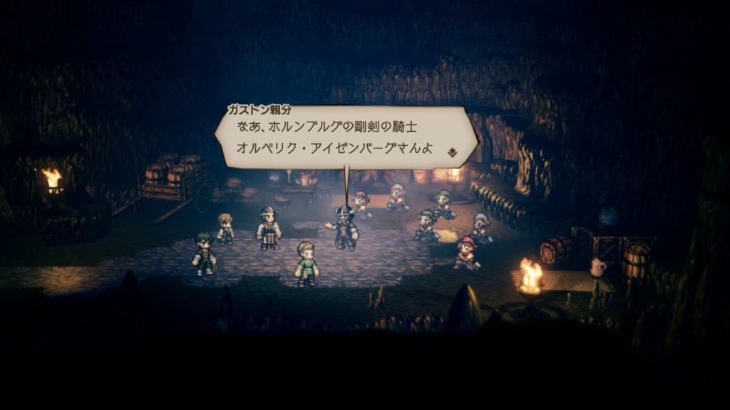 会話の中で、オルベリクの村での通名を聞いて「ホルンブルグの剛剣の騎士オルベリク・アイゼンバーグ」であることがバレました、、、