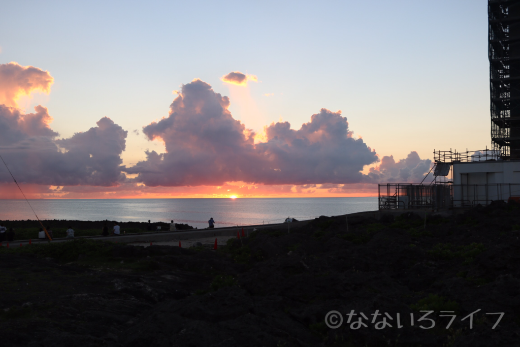 沖縄の残波岬にて綺麗な夕陽に遭遇しました。