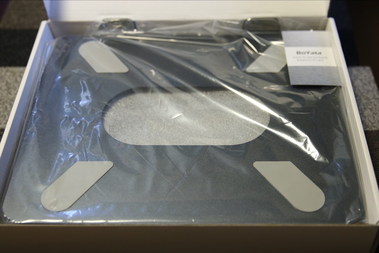 配送箱は無く、このBoYataのPCスタンド商品箱にそのまま発送伝票が貼られて送られてきました。精密機器ではないので、僕自身は気にしませんでしたが、人によってはおおらか気味な配送に少し首をかしげるかもしれません。