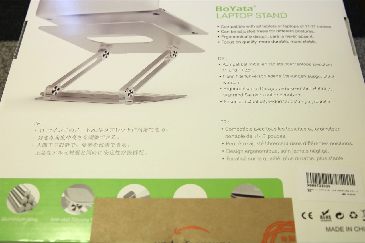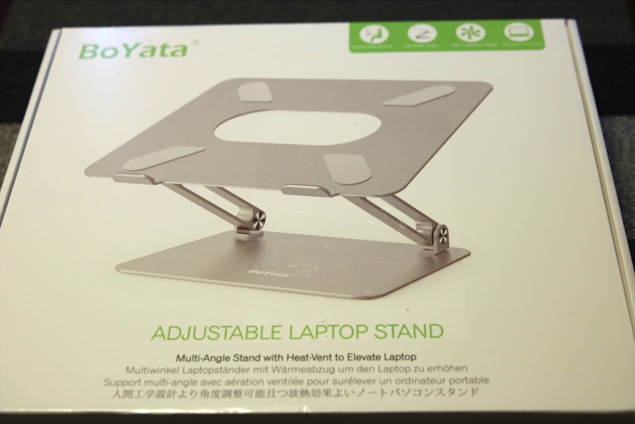 それでも、自分の体を気遣う意味で今回新たなPC作業環境を手に入れるため、PCスタンドの購入を決意しました。将来的にMacBook Pro15.6インチ以上の導入を想定して、17インチまで耐用可能なものとして、BoYata製のPCスタンドを選定。