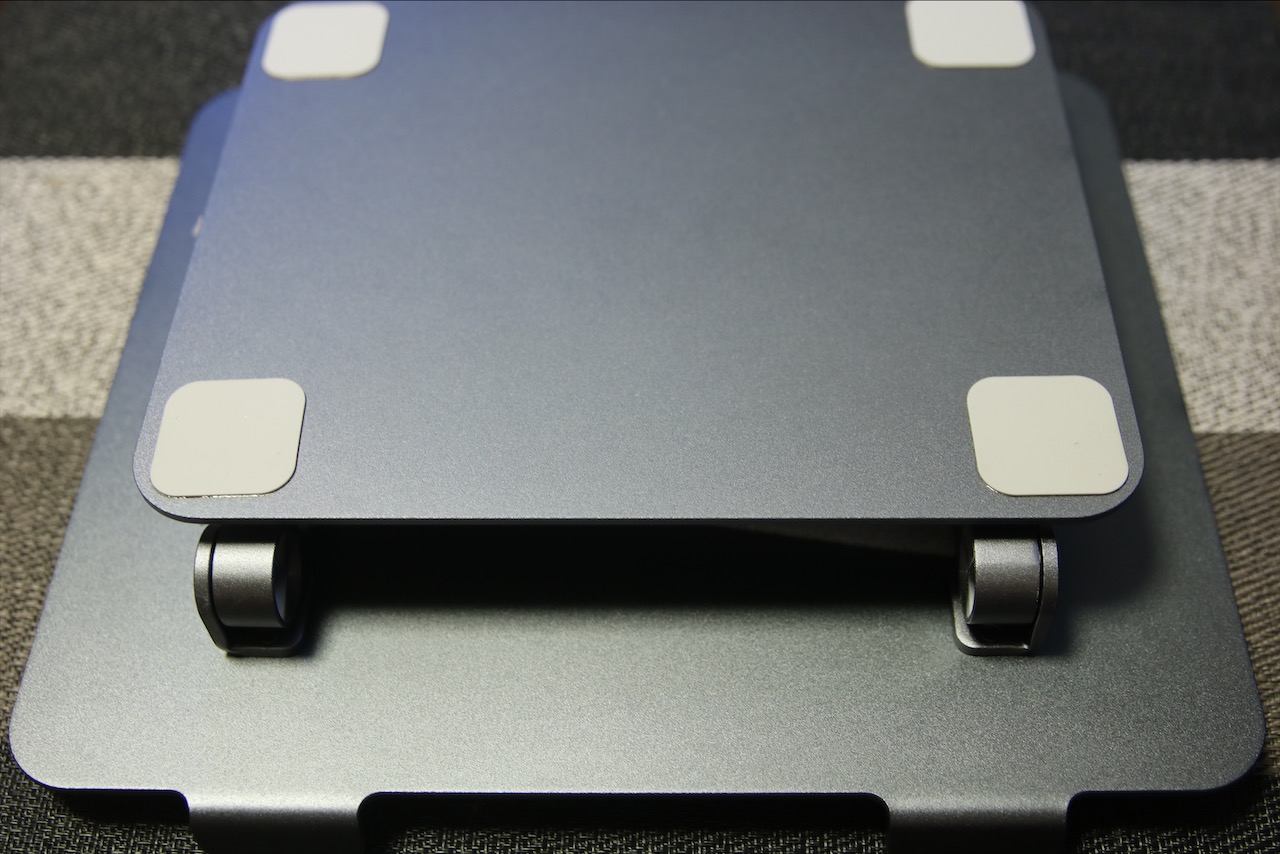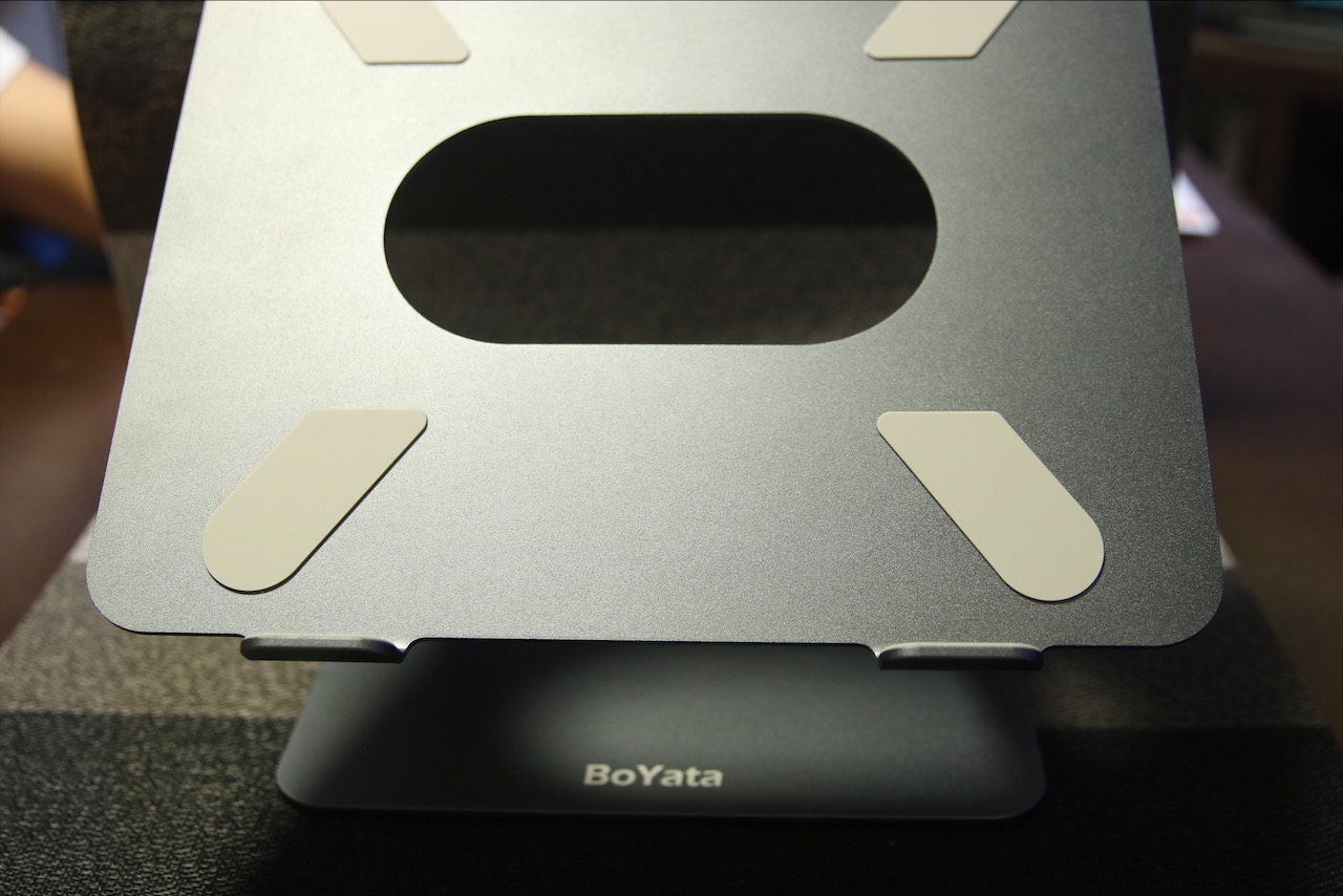 PCやタブレットを乗せる面。4辺に滑り止め素材が貼り付けられています。