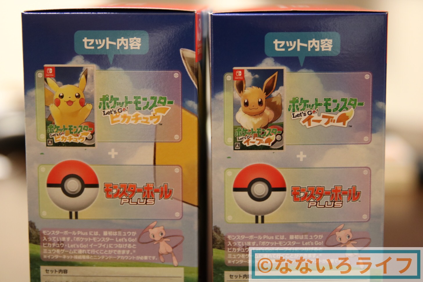 セット内容の部分がそれぞれピカチュウ版かイーブイ版かの表示になっていました。