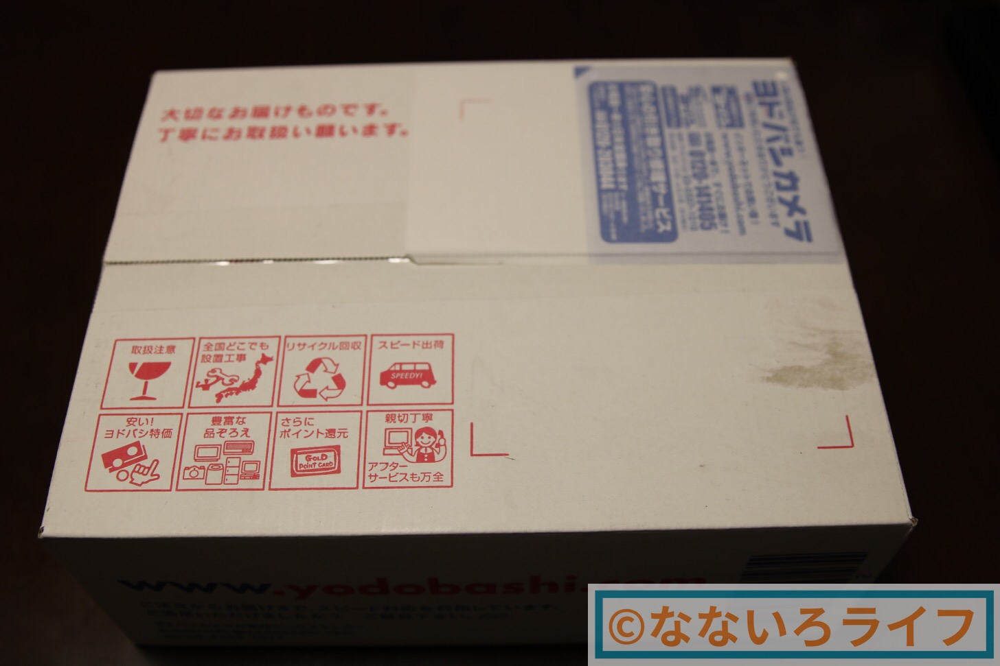 ゲームソフトなどを買うときはヨドバシカメラで予約することが多く、今回もヨドバシカメラさんから届きました。およそ80サイズの輸送箱に夢と希望が詰まっている様子です。