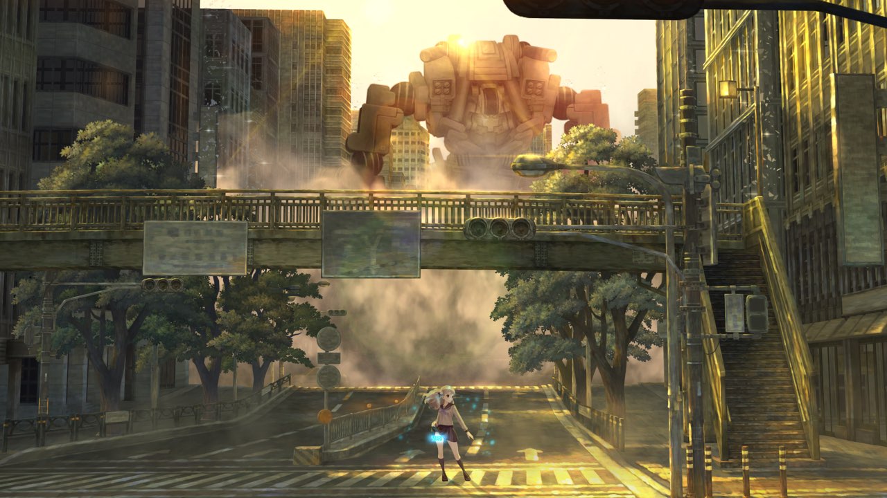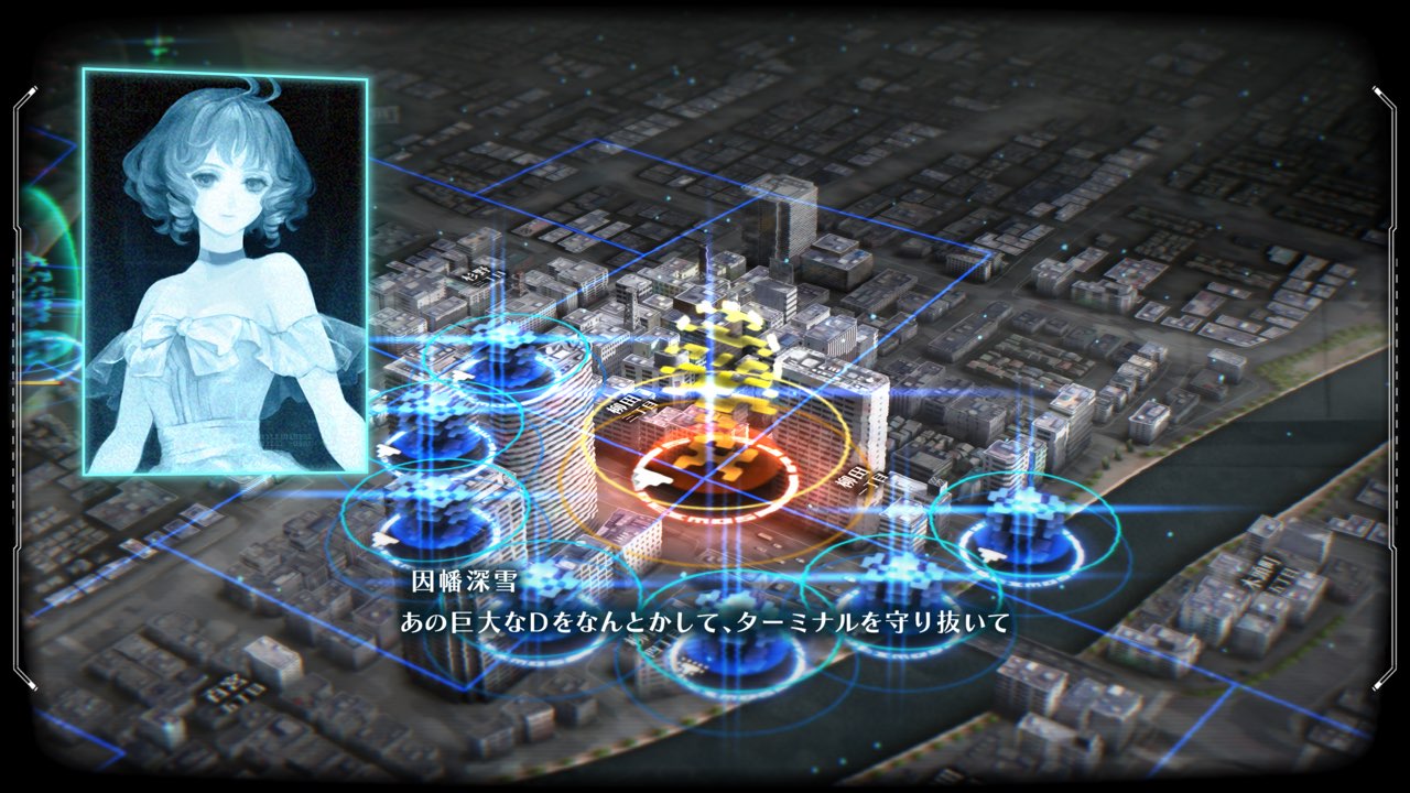 また、難易度に関しては、ストーリーを追いかける追想編はボタンを押していくことで先へと進めるので評価外。加えて、機兵を操作してダイモス(D)を倒していく崩壊編はノーマルでも街やターミナルへのダメージをほぼ受けること無くクリアできるため、難易度は低いと言えます。