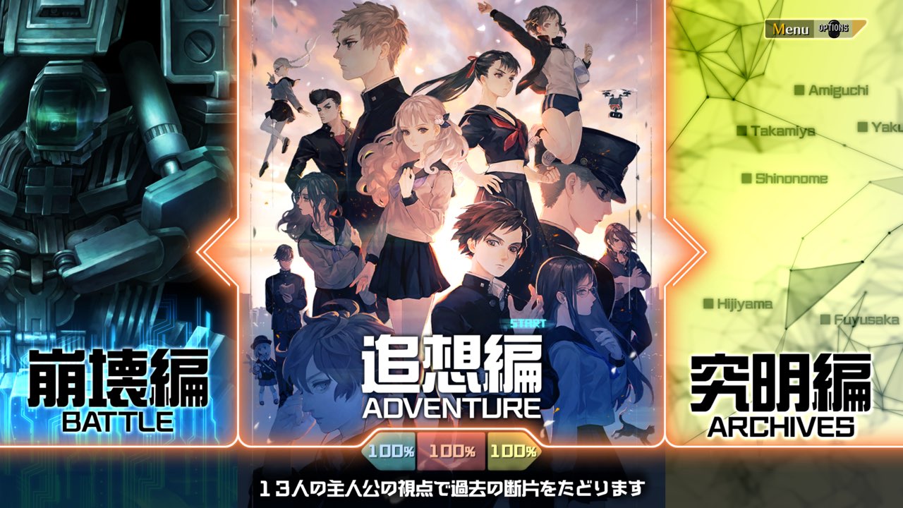 本作のストーリーは全てのキャラクターが体験したことを追走することで、達成率100%を獲得することが可能です。また、物語を保管する解説は、アーカイブ編である究明編によりほぼ閲覧ができるため、裏設定やストーリーの考察予知はそれほど無いのも特徴的かもしれません。