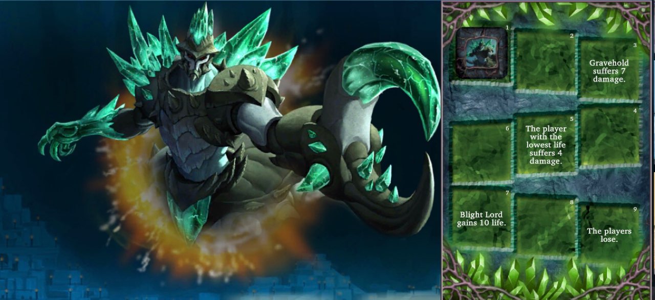 暴走効果で毒効果付の宝石を強制的にプレイヤーデッキや手札に押し付けてきて、その宝石の数が少ないと「Tainted Track」が進んでゲーム強制終了に陥れようとしてきます。