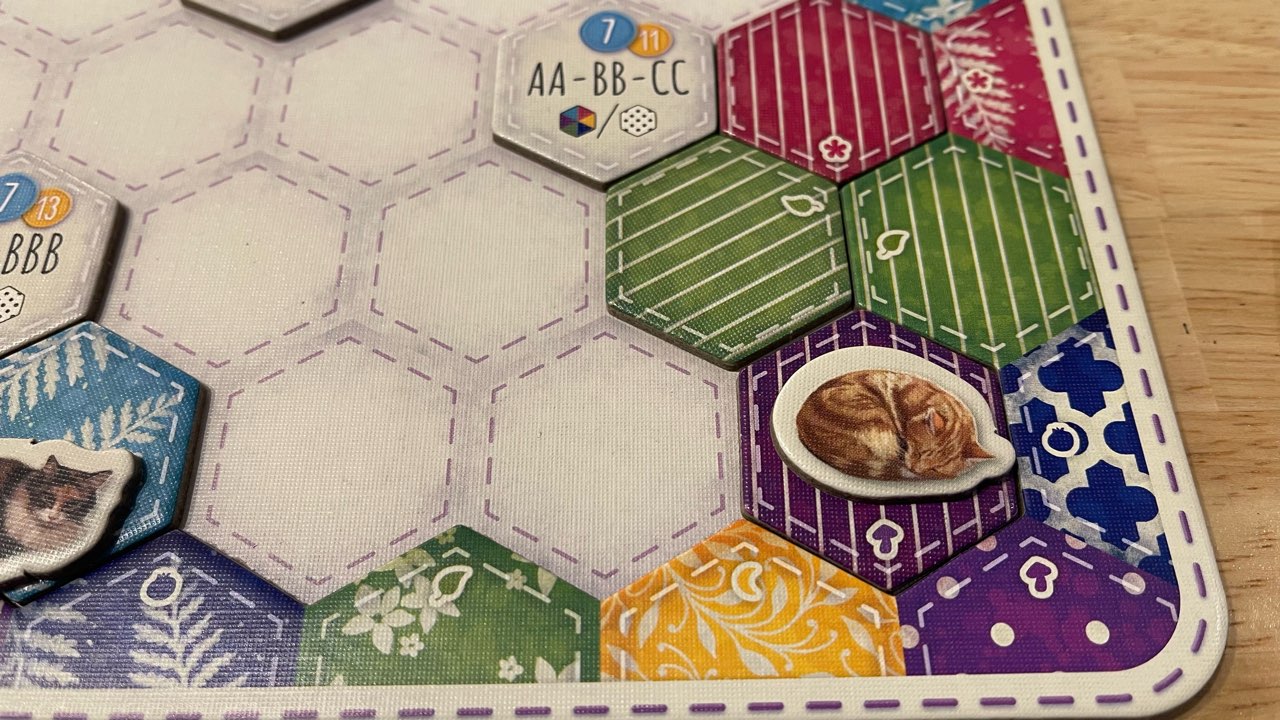 パッチワークがランダム要素のため、狙っていた色・パターンのものを引けずに悶々とする場面が何度かありましたが、限られた条件の中で戦うのも面白かったです。