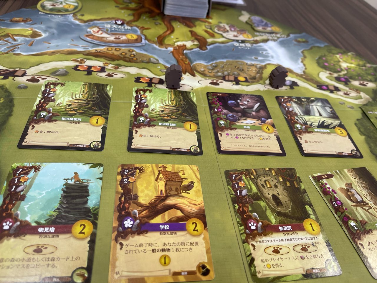 効率的に街作りを進めるため、フィールド場の動物カード・建物カードを積極的に獲得する必要があります。
