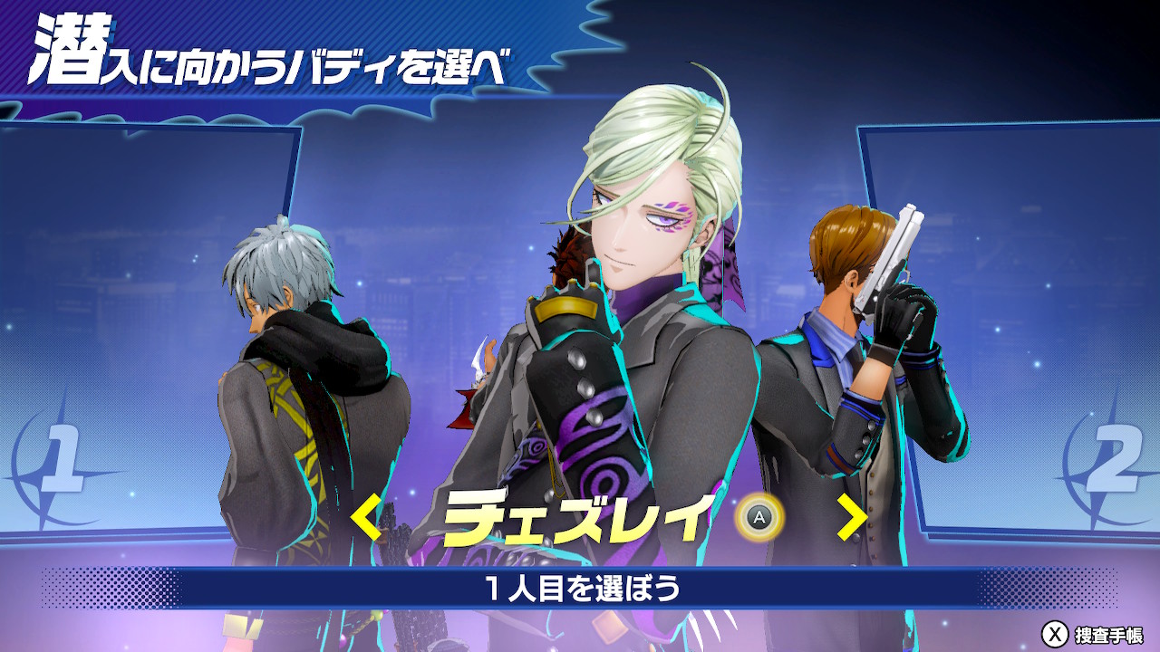 潜入ミッション準備のための捜査パートは、どちらのルートでクリアするかを決めてから聞き込み対象を選んで進めていくこととなりますが、この時のバディは誰を連れて行くのか選択することとなります。