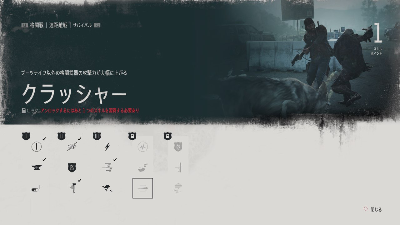 集団との戦闘を効率的に逃れるため、近接スキルは優先して伸ばしていきましょう。