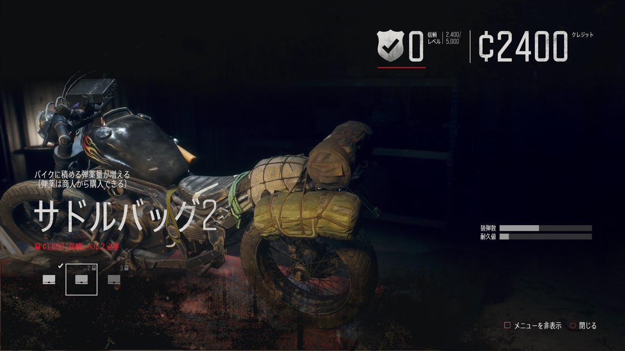 ステルスゲームとしての安定的な楽しさもありますが、積極的にバイクを強化して快適にストーリー攻略を進めていくのも本作の楽しみ方だと言えます。