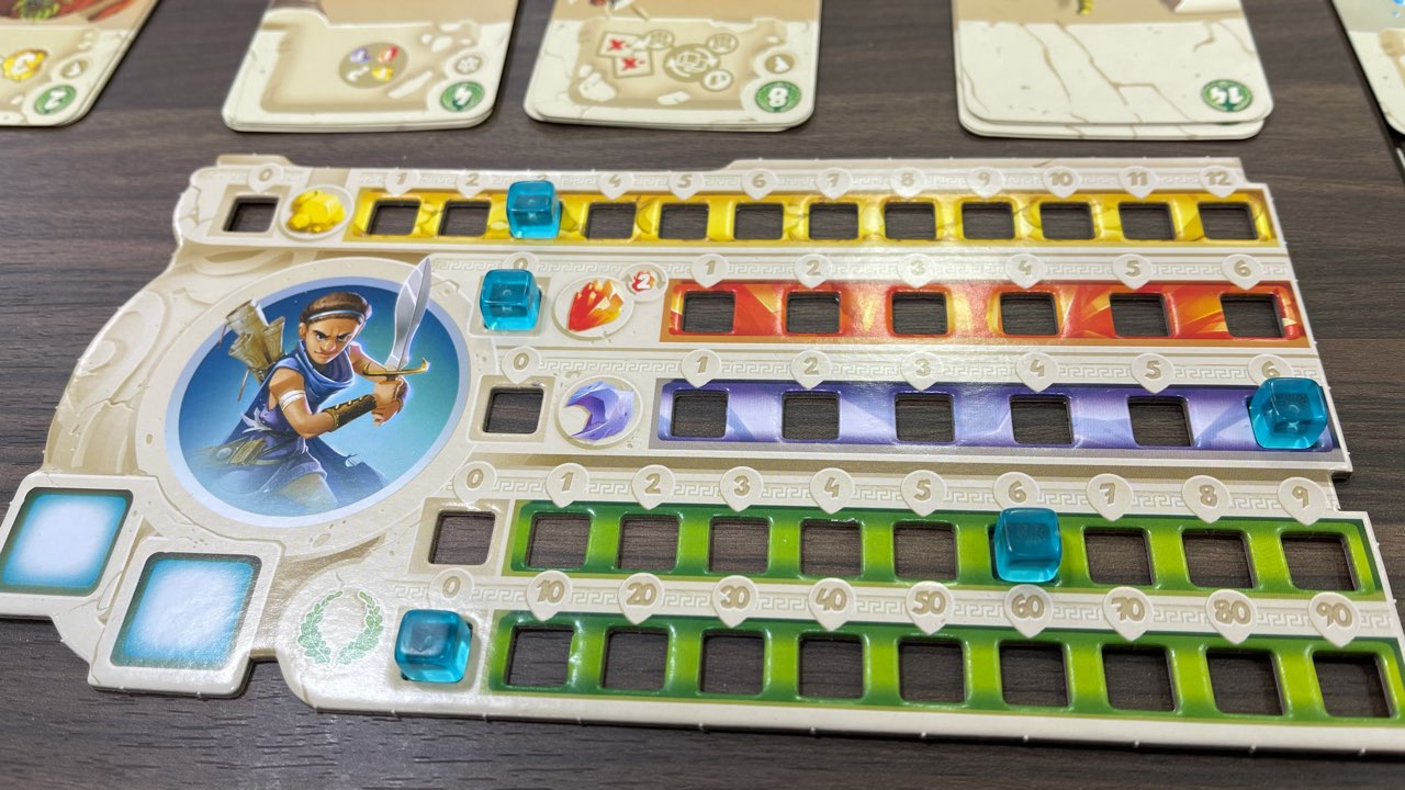 ダイスの出目にある程度左右されつつも、その後は自分で選択する行動によってゲーム展開が変動するので、プレイする度に別のゲームが繰り広げられるのは良い点だと思います。